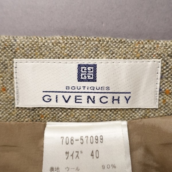 ご覧いただきありがとうございます。 気持ちのよいお取引となるよう心がけておりますので どうぞご安心ください。 GIVENCHY/ジバンシィのカシミヤ混タックタイトウールスカートです。 お色はブラウンベージュ系です。 シンプルながらも洗練されたデザインが際立つ逸品。 シルエットも美しく、上品でエレガントな大人の女性らしさを引き立たせてくれます。 ワンランク上の装いにオススメの一着です。 是非、お手に取ってお確かめください。 サイズ表記は 40(レディースLサイズ相当)です。 実寸も合わせてご参考ください。 ■ウエスト幅:35.0 cm ■全長:64.0 cm (すべて平置き採寸です。多少の誤差はご了承下さい。) 写真の通り、使用感はほとんどなく綺麗な状態ですので、 気持ちよくお使いいただけるかと思います。 18650 |