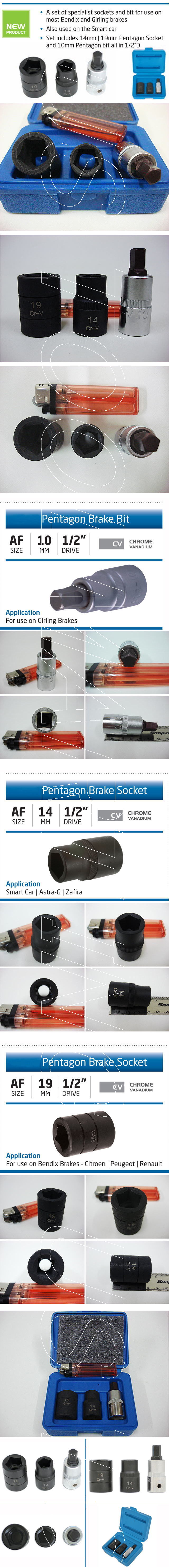 Name:Brake Socket & Bit Pentagon Set 3pc