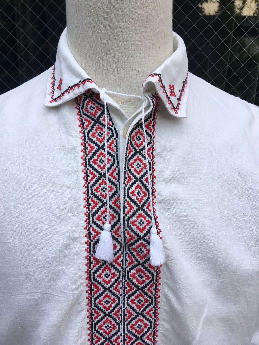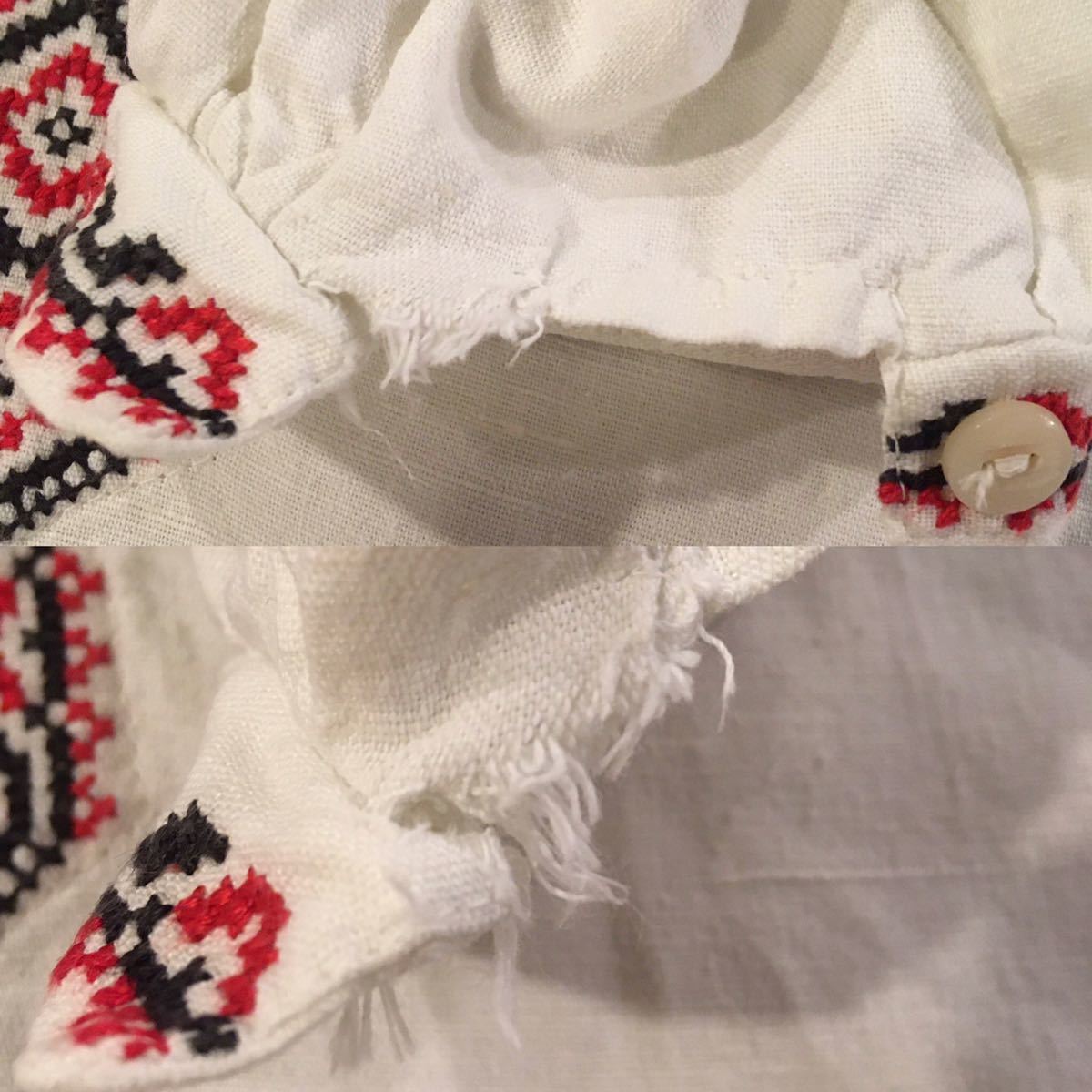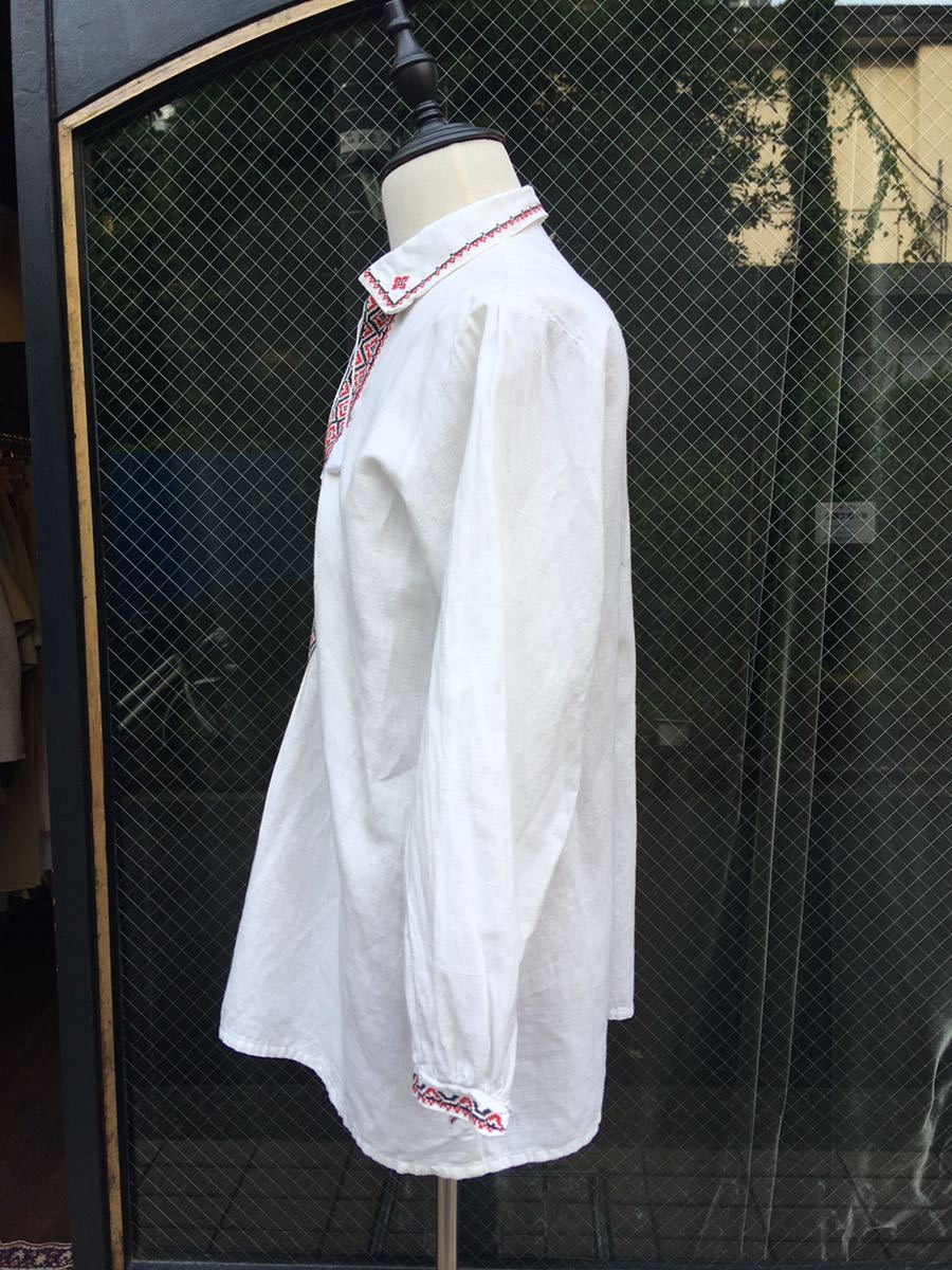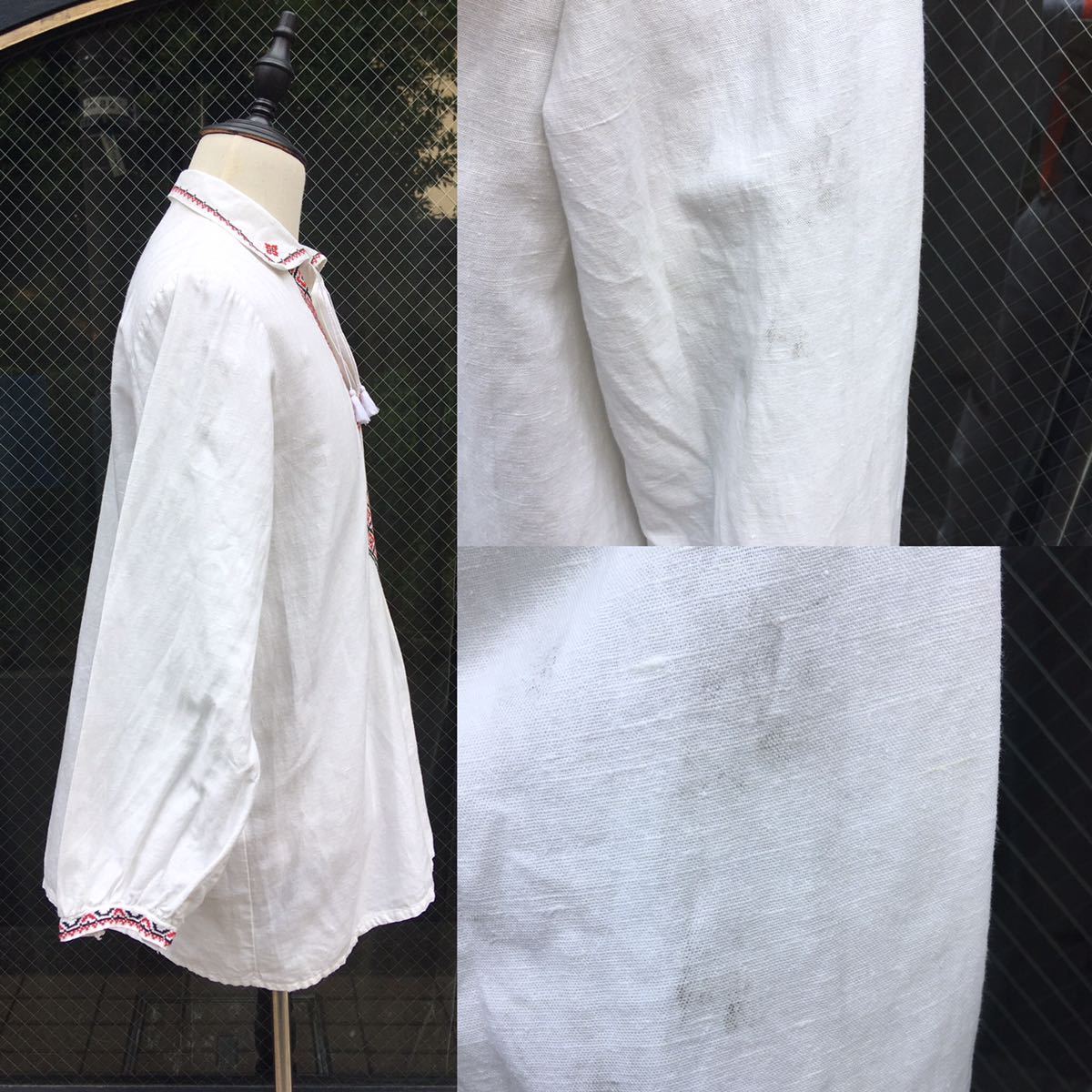 イギリス古着 リネン刺繍シャツ