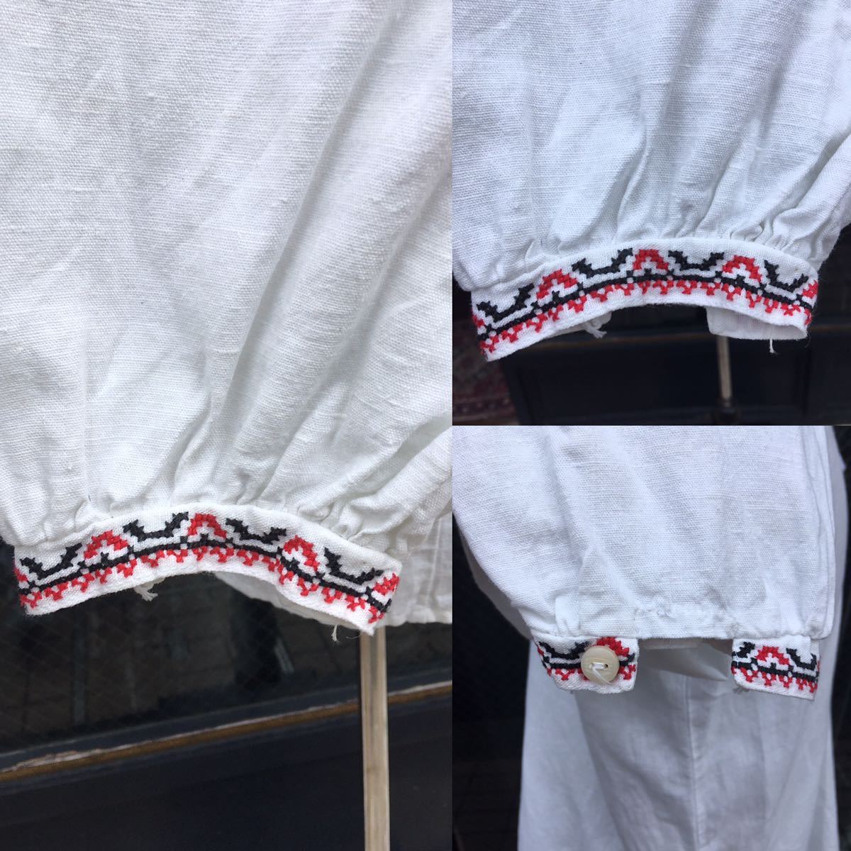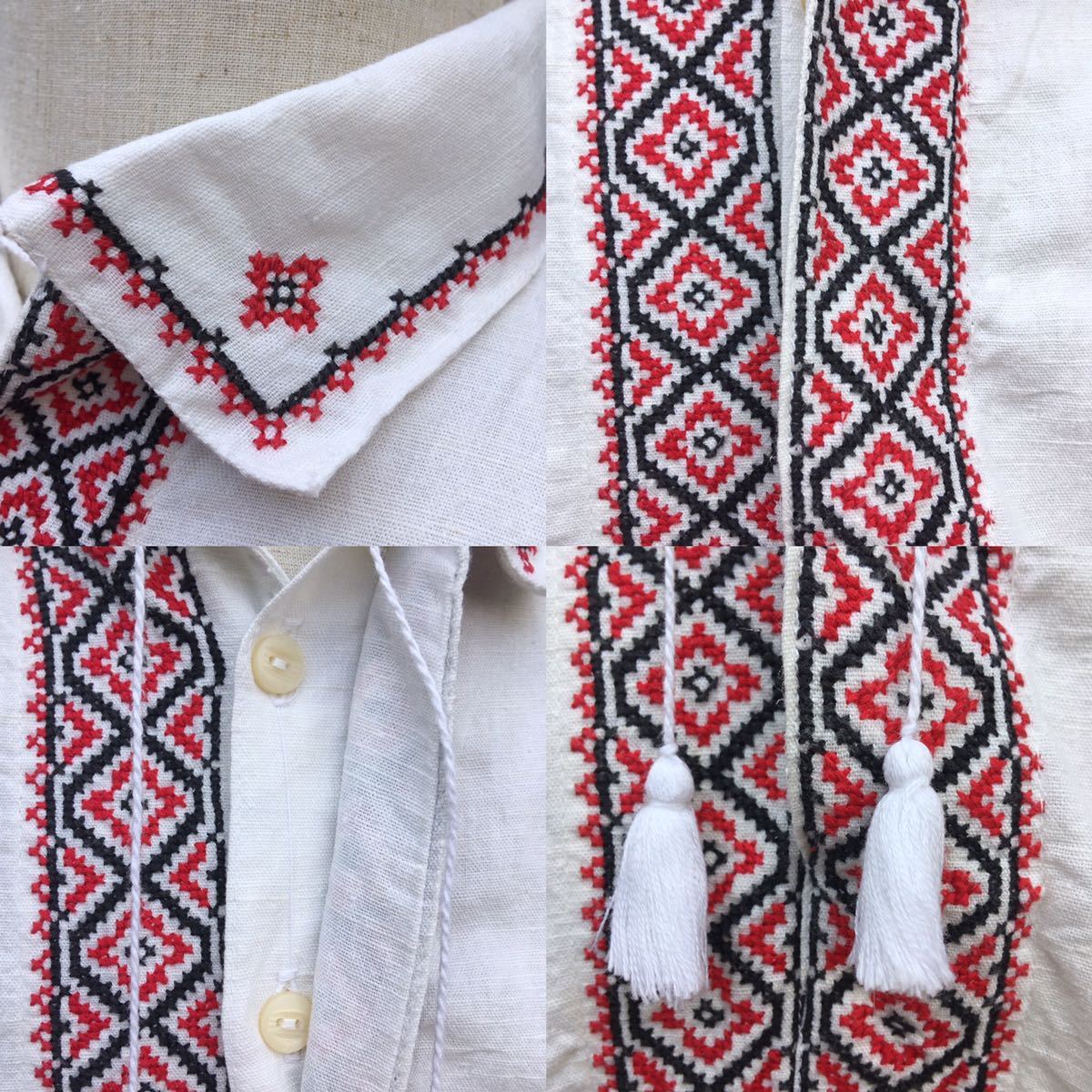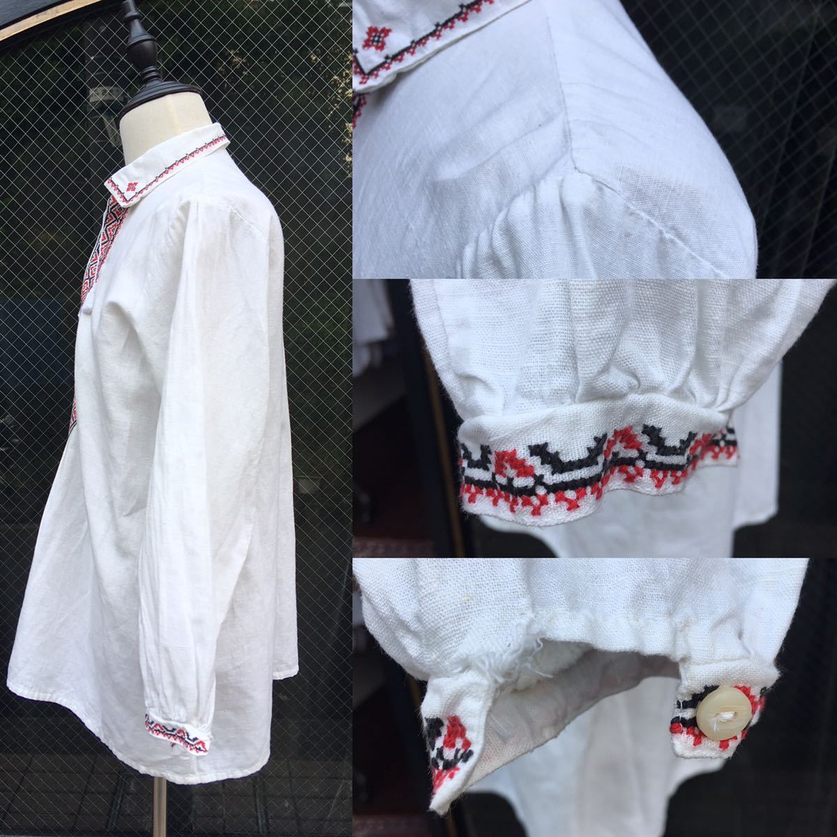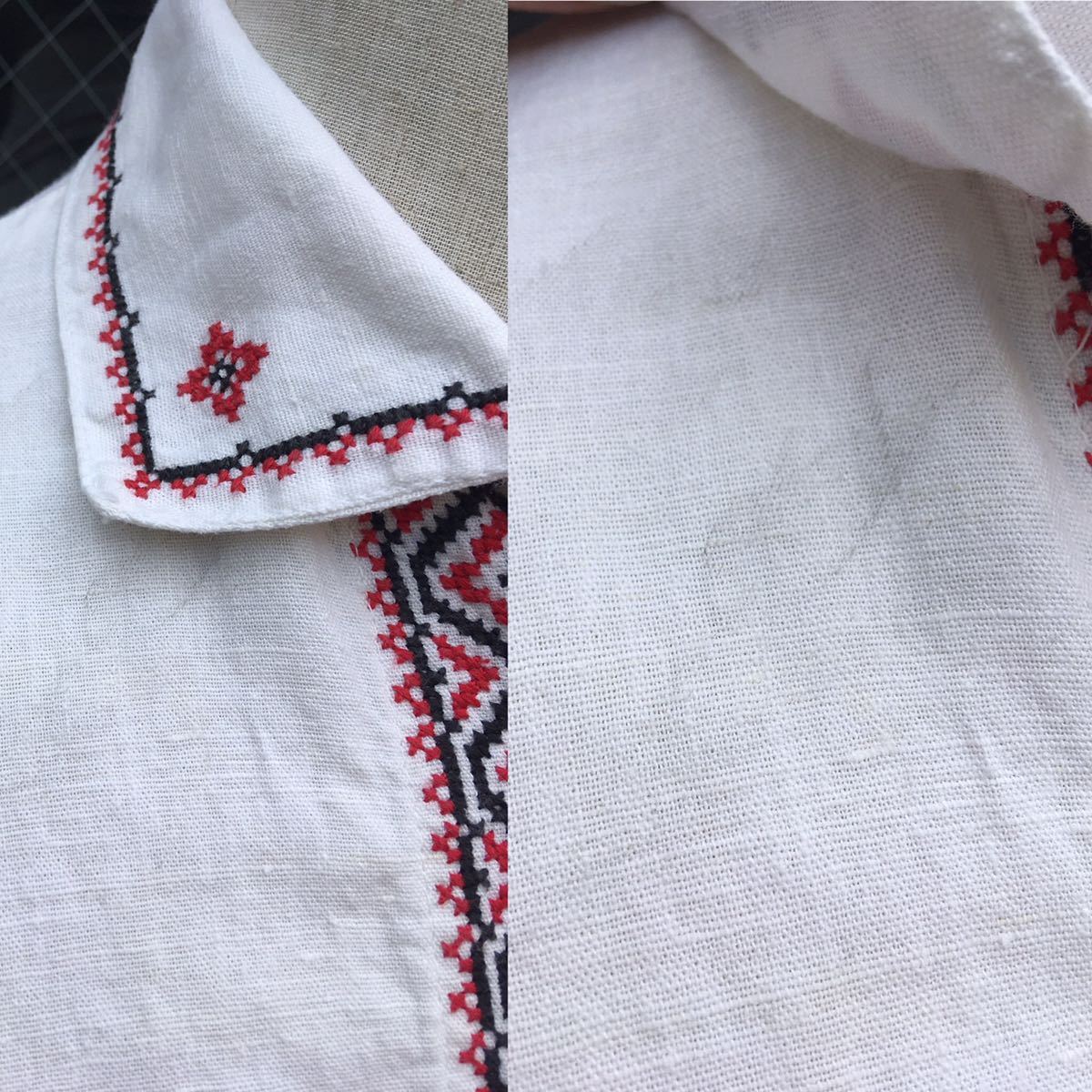 イギリス古着 リネン刺繍シャツ