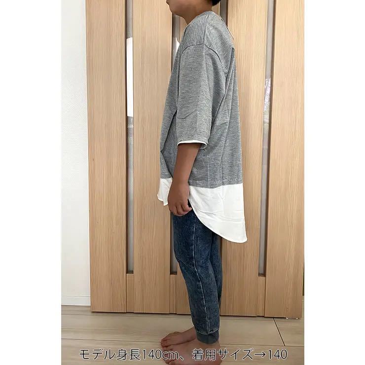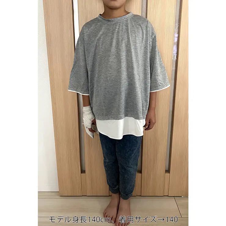 キッズサイズのシンプルレイヤードトップス。