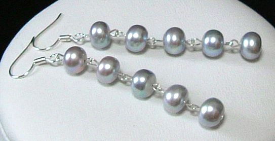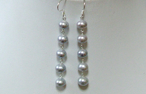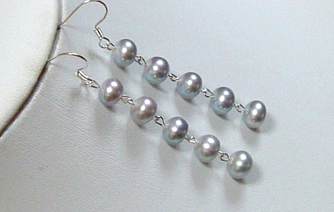 真珠層100%●天然淡水真珠のロングピアス●シルバーグレー色●無料でネジバネ式イヤリングに変更可能