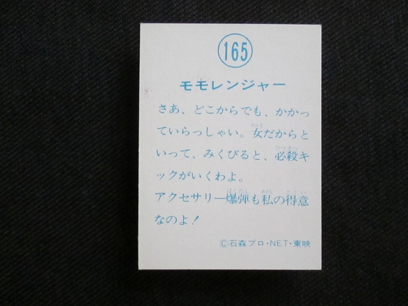 秘密戦隊ゴレンジャー ミニカード 70年代 バラ売り ・メーカー:山勝 ・1975年頃、当時の放送時に販売 ・6.6 cm x 5.0 cm ・同梱発送可能(複数落札の場合:定形、定形外郵便は、送料が変わる場合があります。) ・1-288番シリーズ ・1弾80種 001-080(タイトル違い.55.57.59.61.71.76.77,表修正.73) ・2弾32種 081-112 ・3弾64種 113-176 ・4弾48種 177-224 ・5弾32種 225-256 ・6弾32種 257-288 〓参考項目〓 ・原作石森章太郎 ・脚本上原正三 他 ・監督竹本弘一 他 ・制作テレビ朝日 ・放送期間1975年4月- 1977年3月 ・全84話 〓出演〓 ・海城剛・アカレンジャー:誠直也 ・新命明・アオレンジャー:宮内洋 ・大岩大太・キレンジャー:畠山麦 ・熊野大五郎・2代目キレンジャー:だるま二郎 ・ペギー松山・モモレンジャー:小牧りさ ・明日香健二・ミドレンジャー:伊藤幸雄 ・江戸川総司令:高原駿雄 ・陽子・007:鹿沼えり ・黒十字軍総統:安藤三男、八名信夫 ・ナレーション:田中信夫、大平透