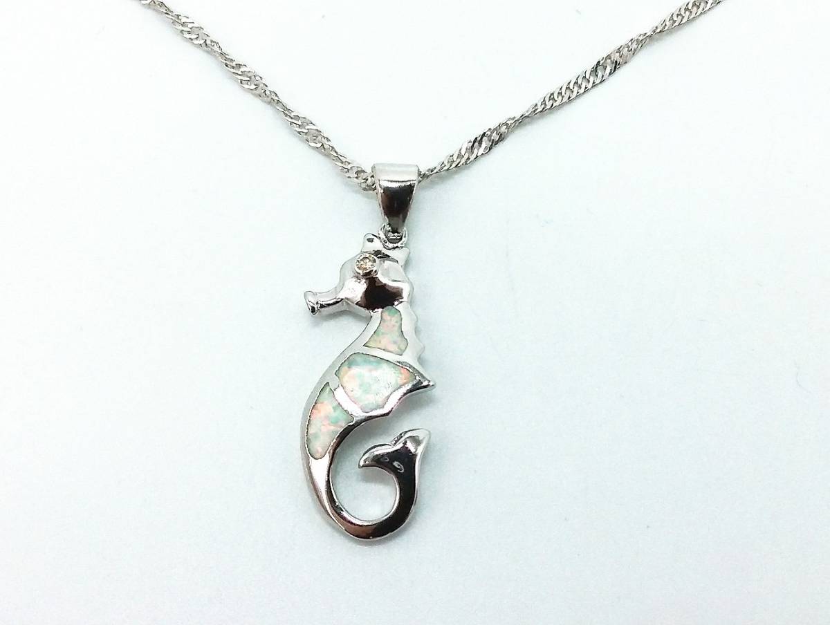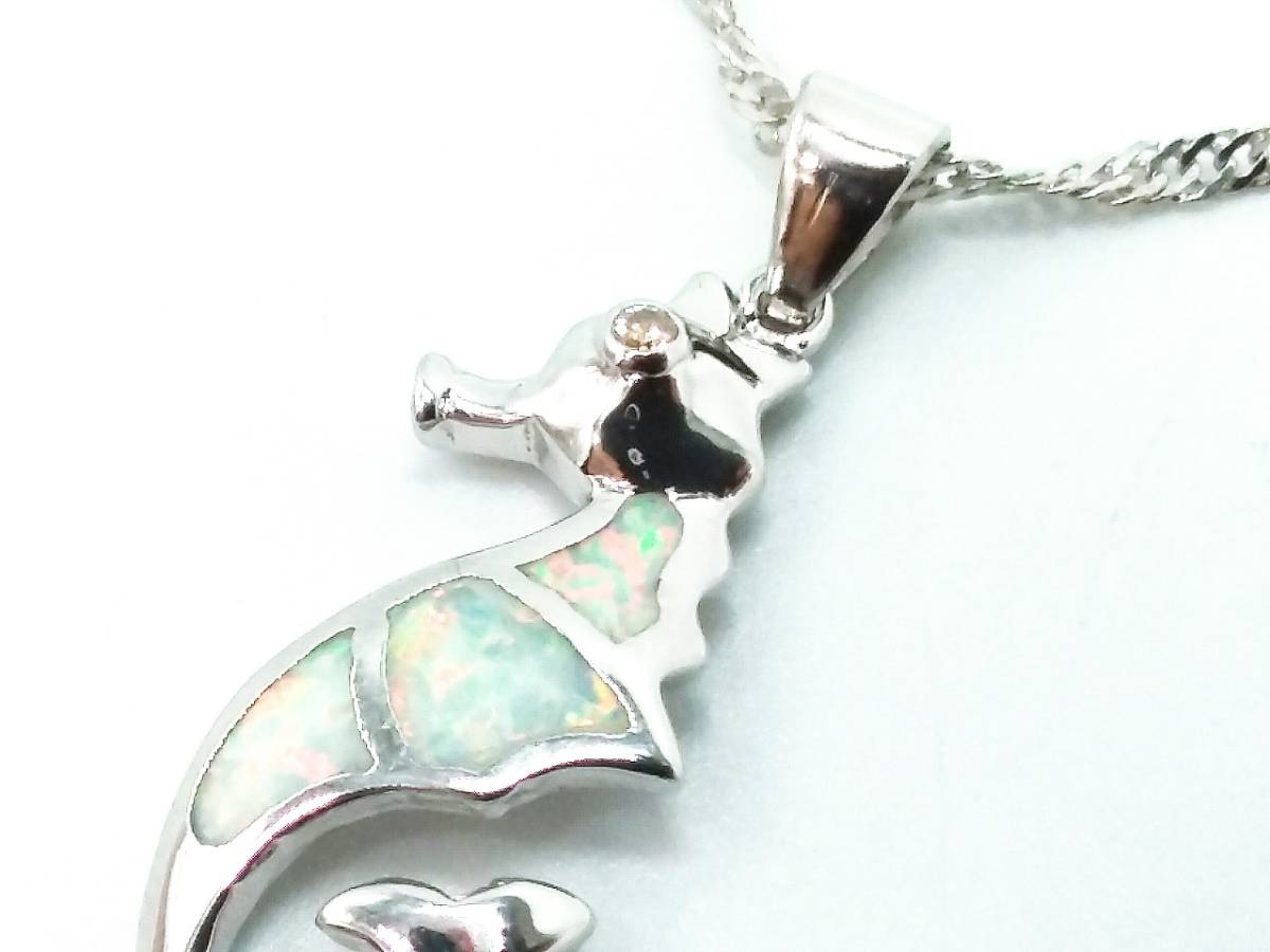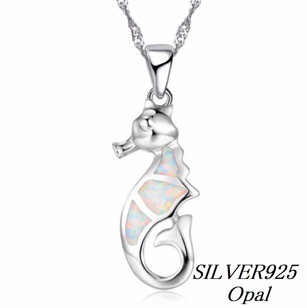 【★E-30】SILVER925張り合わせ オパール タツノオトシゴ ネックレス ホワイト シルバー ハワイアン【送料全国一律198円】