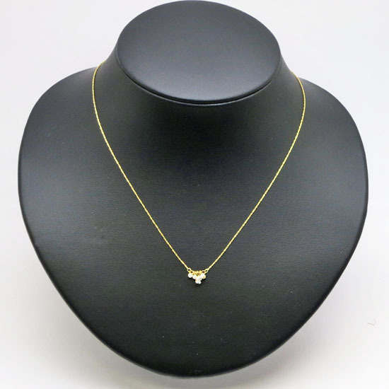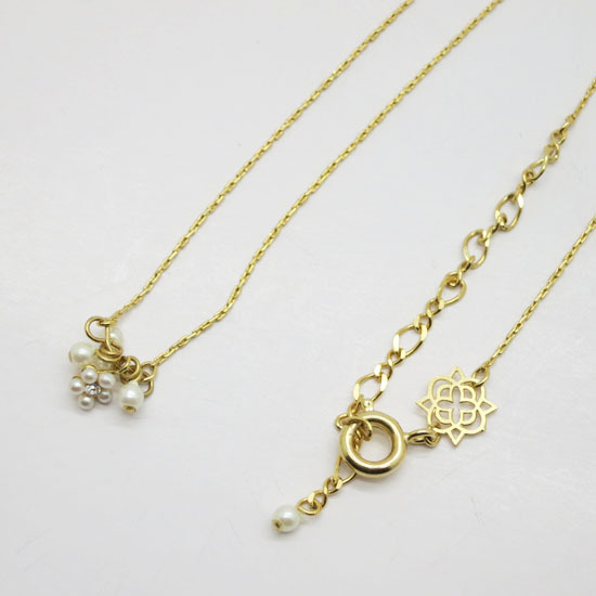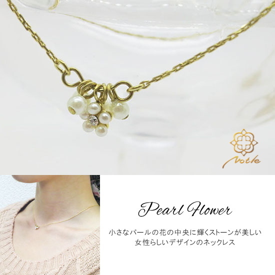 人気のプチサイズのネックレス!花をモチーフにしたパールと、どこか懐かしい風合いのゴールドのチーンは華奢で繊細な女性を連想させます。お気に入りの1本になること間違いナシ!