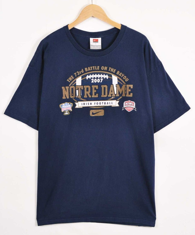 | 商品詳細 | フットボールモチーフがポイントです!USA古着「NIKE」のカレッジTシャツです!こちらはノートルダム大学の1枚です!ネイビーベースにフットボールモチーフのデザインなどがとても良い雰囲気ですのでコーディネートのポイントとして大活躍してくれます!あまり目にしない1枚ですので本当にお勧めです!またサイズは大きめですのでジャストサイズの方はもちろん、ビッグTシャツスタイルやTシャツワンピスタイルにもお勧めです! ■状態 USEDグレード[B] 1. ボディ:洗濯等による色あせ・縫い合わせ部などのスレ・毛羽・毛玉・薄い汚れ・細かい汚れ・細かい生地キズなどあり 2. プリント:クラックあり ※USED商品ですのでそれなりの使用感があります。予めご了承ください。 ■サイズ[単位:約/cm] 表記・・・XL 着丈・・・75 身幅・・・62 肩幅・・・59.5 袖丈・・・22 ※ブランドや年代によってもサイズ感が異なりますので実寸を必ずご参考下さい。 ■商品詳細 ブランド・・・NIKE 商品名・・・半袖Tシャツ 生産国・・・ホンジュラス 製造年・・・- - - - 色&柄・・・ネイビー 素材・・・綿:100% |