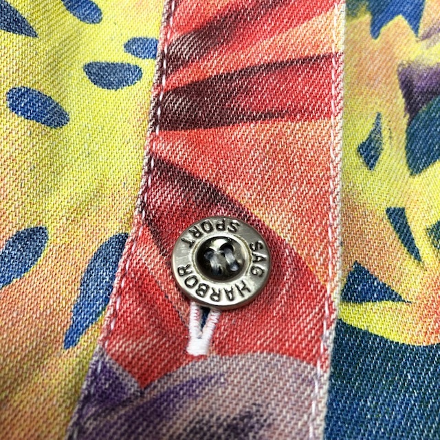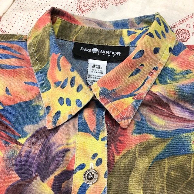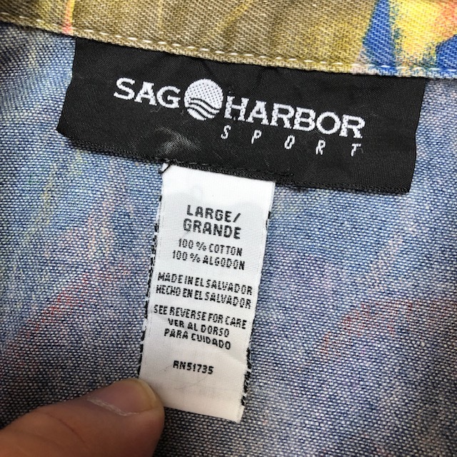 sh●225 USA古着 90s~ 総柄 ワイドデニムシャツ L(XL) SAG HARBOR オールド アメリカ古着 フラワー ボタニカル