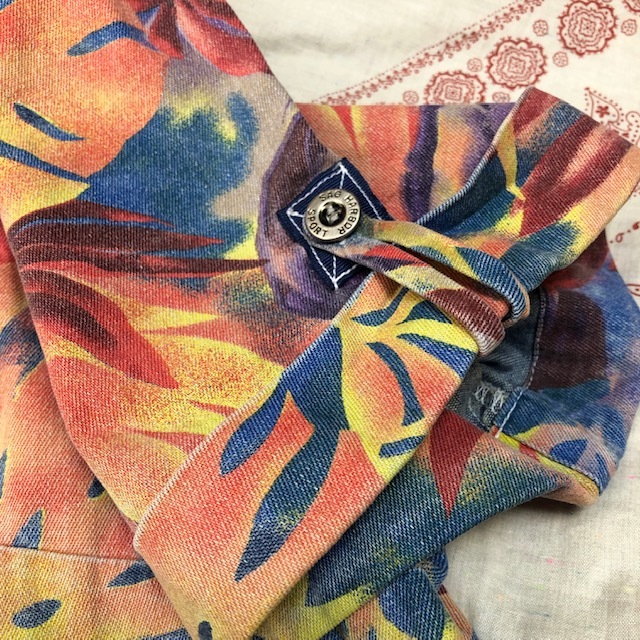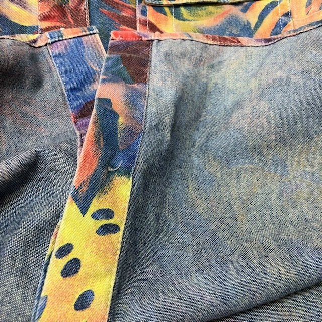 ●商品説明・・・アメリカ買い付け品になります。90年代後半頃~のオールドの珍しいややライトオンスのデニム生地に淡くスプレープリントしたような風合いの総柄のデニムシャツです。ワイドでゆったりしたシルエット感・袖はロールアップデザインになっており、メタルボタンもいいアクセントになっています。プリントも淡めタイダイ染のようなフェード感のある感じで、いい風合いです。素材はコットンです。USのL表記で、ワイドなL~XL程度のサイズ感かと思います。