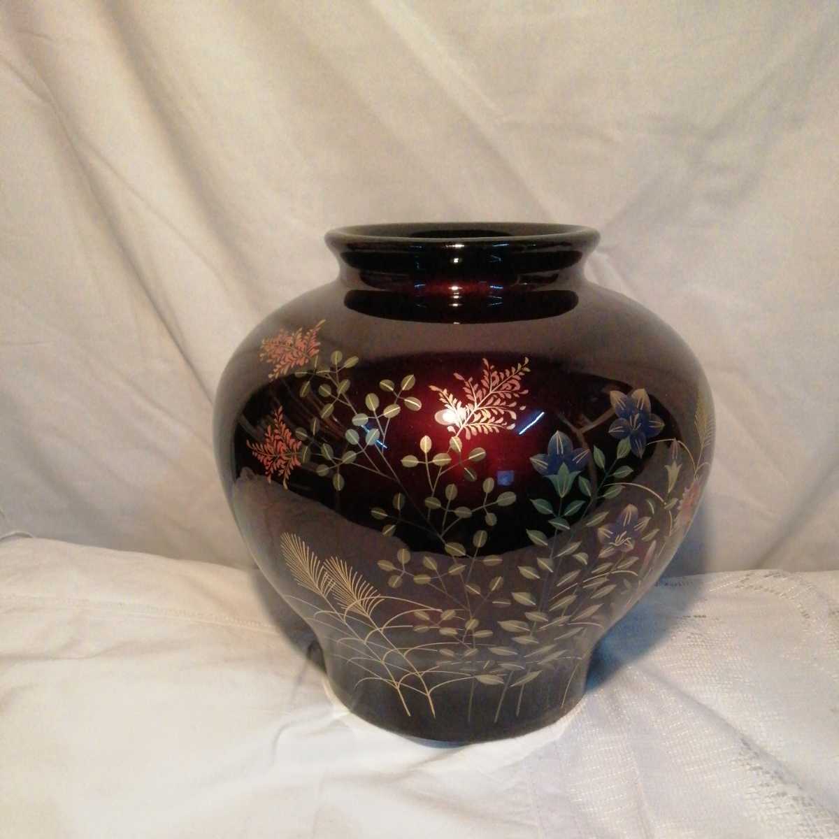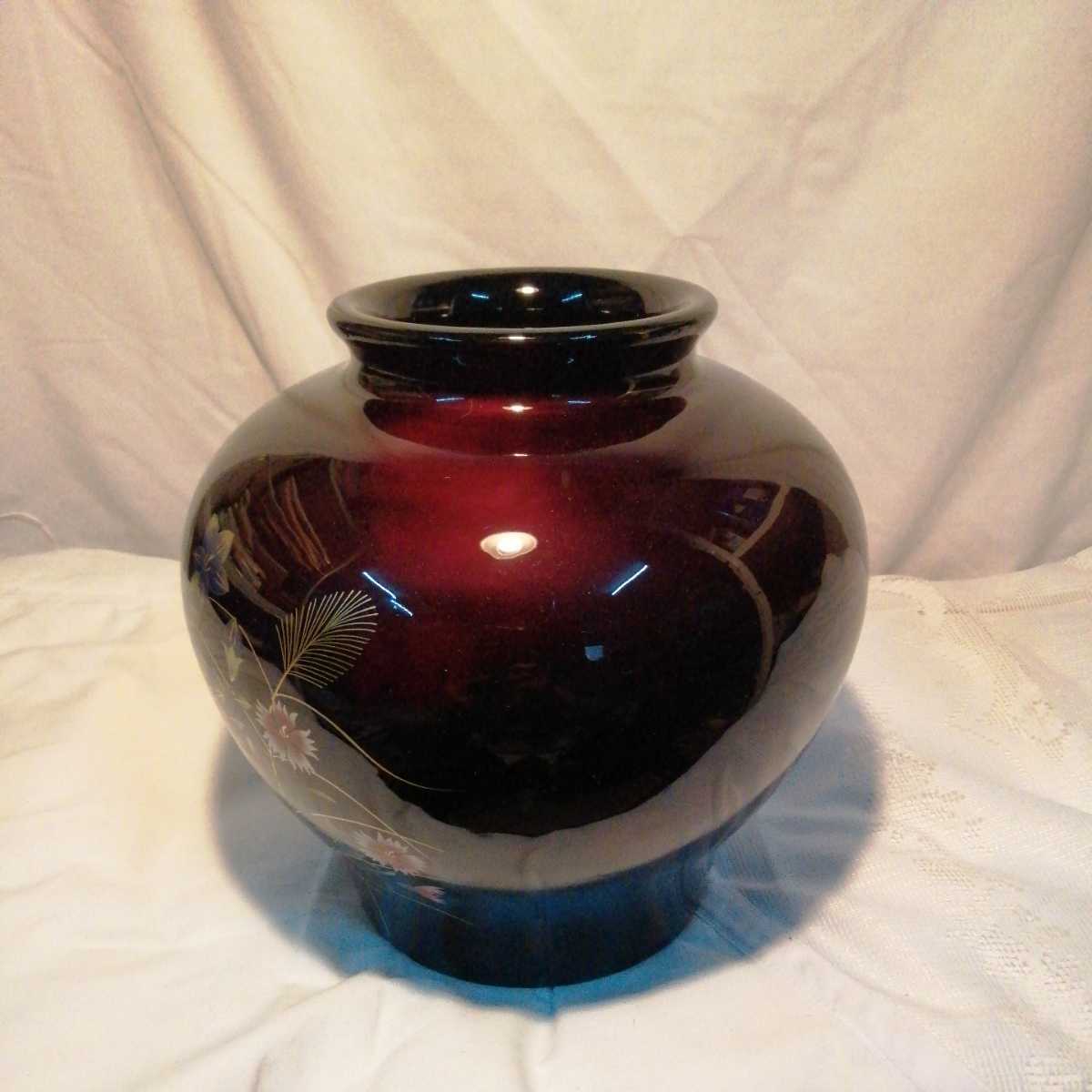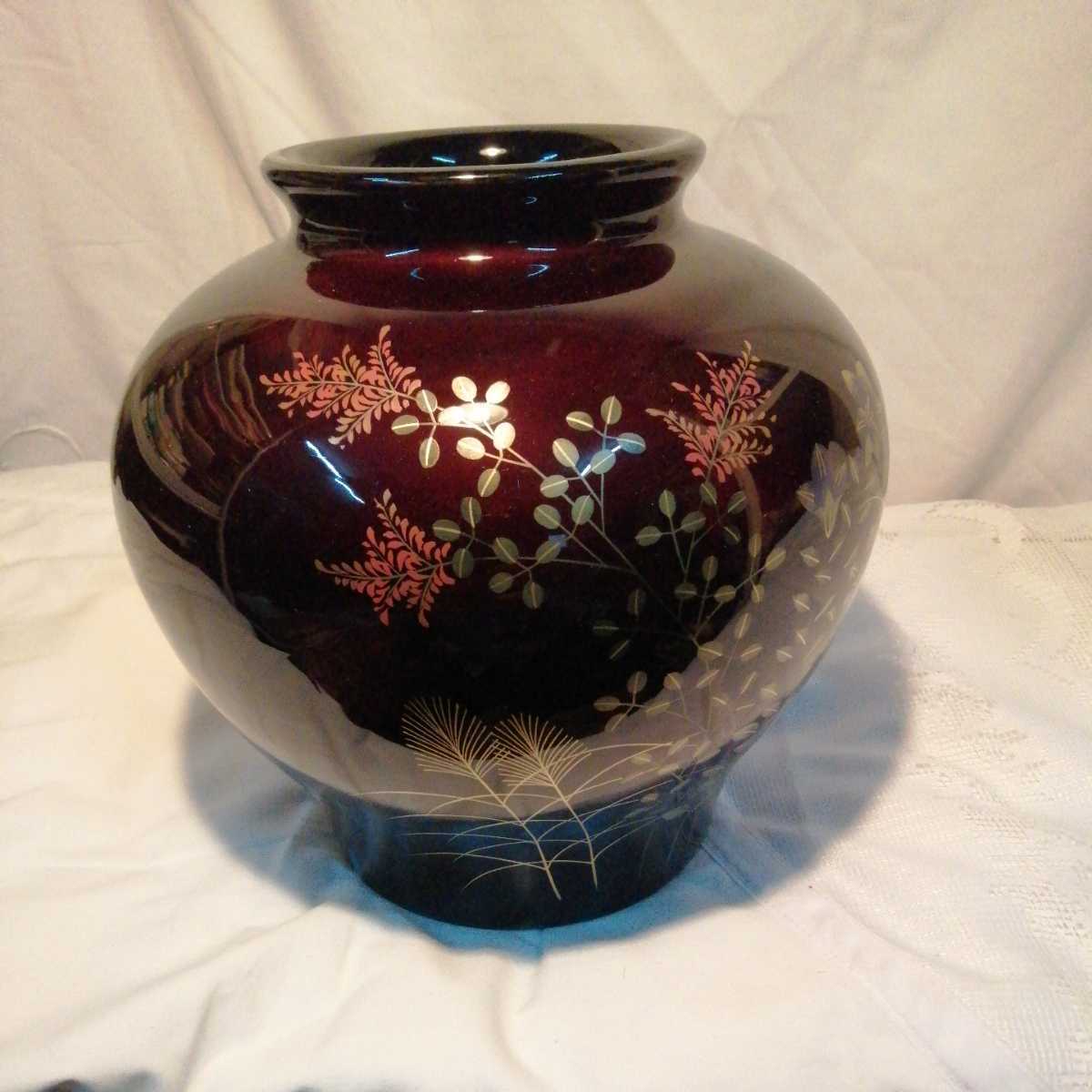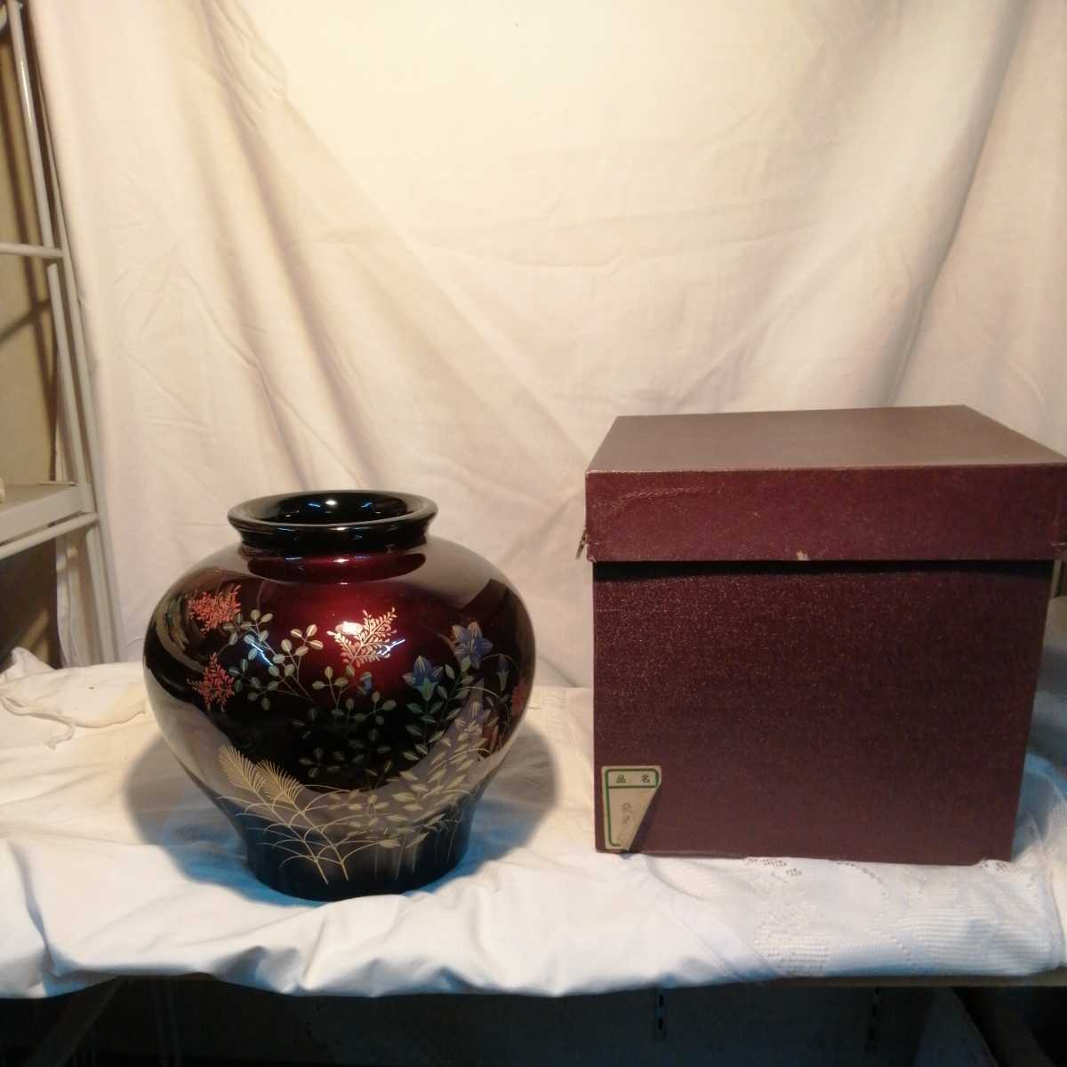 秋草 花瓶 ワインレッド 綺麗 鮮やか 華柄 花 箱入り未使用品