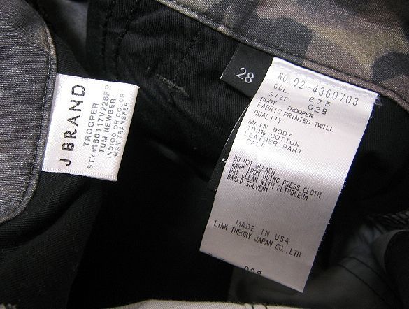 アメリカ製 J BRAND TROOPER 迷彩カーゴパンツ カモフラ ジェイブランド セオリー