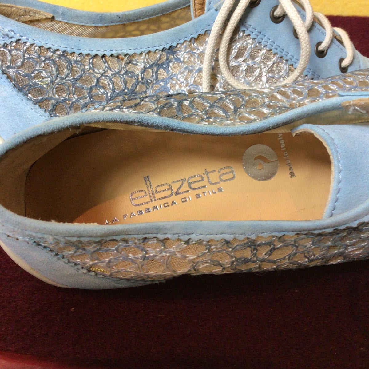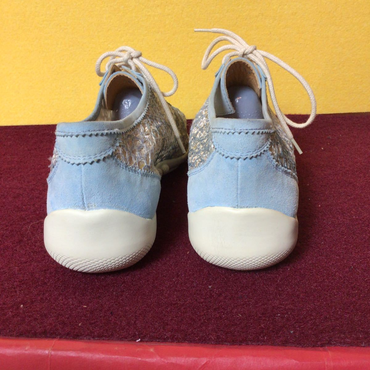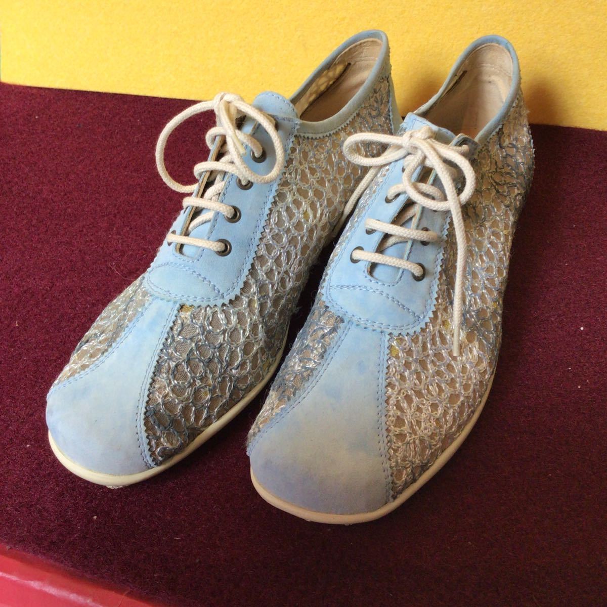 シースルーと淡いブルーのウエードがとても爽やかなスニーカーとなります。春夏の足元をとても涼しげしてくれそうです。女性的なデザインなのでふんわりしたスカートなどにとてもよく合うかと思います。