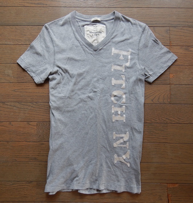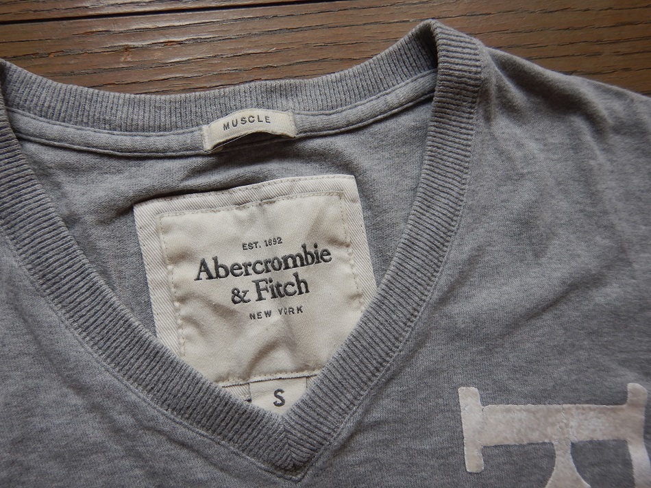 アバクロ Tシャツ グレー 半袖 S Vネック メンズ マッスルフィット 綿 コットン MUSCLE 中古 ユーズド 古着