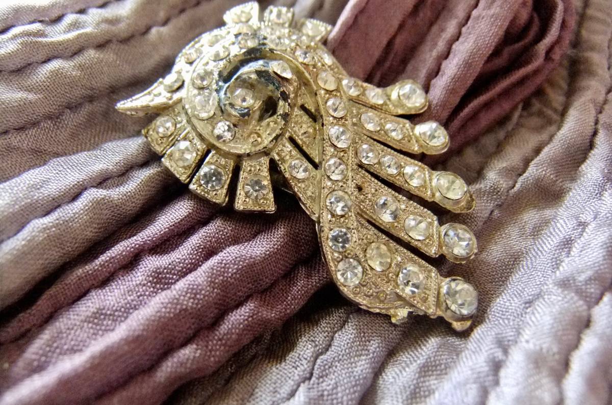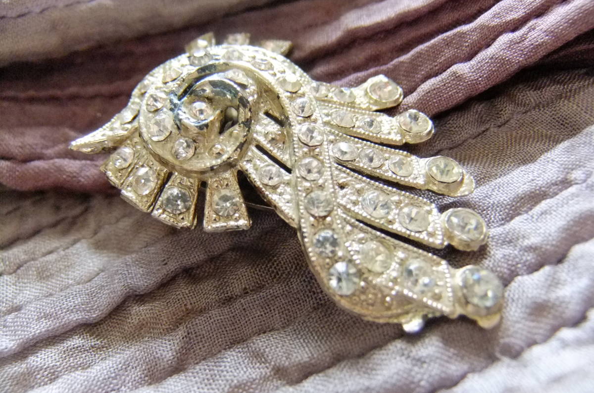 アンティーク品、アール・デコデザイン、クリアストーンのドレスクリップ。