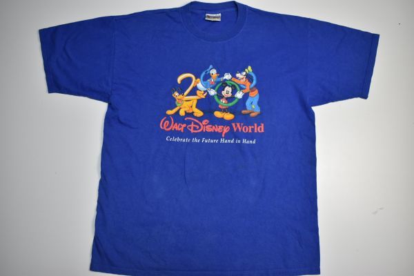 ●US USED 超ビッグサイズ US古着 Disney ディズニー ミッキー ドナルド グーフィー キャラクター プリント ブルー青【2XLくらい】