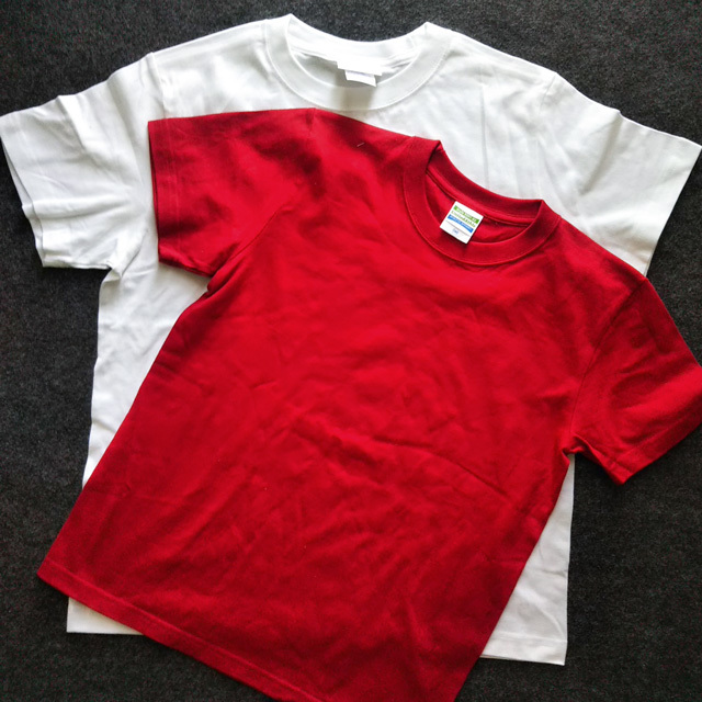 無地 Tシャツ 2枚セット Sサイズ 150㎝ 白系 ホワイト 赤系 レッド 半袖 コットン 未使用に近い サイズ違い