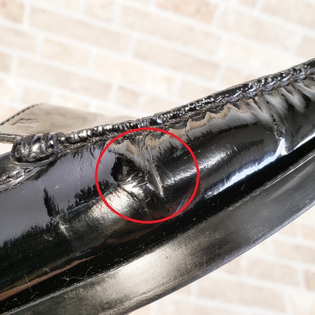 商品説明 | ・ブラックカラーの エナメルレザー ローファーです。 ・素材 エナメルレザー(本革) ・カラー ブラック (画像参照) ・製造国 イタリア製 ・付属品 保存袋 ・サイズ 35 ※22.0cm程度 アウトソール最大幅 約8.8cm アウトソール最長幅 約24.5cm ヒール 約2.5cm ・商品コンディション 両足アッパー・両側面に横線状の履きジワがあります。(画像参照) 両足かかとに、かかとを踏んで出来たような、かかとから土踏まず付近にかけての線状の履きジワがあります。(画像参照) 右足小指付け根付近に5mm程度の横線状のキズ・縦に入った履きジワ深くなっておりが2cm程度キズになっています。(赤丸部分 画像参照) 両足ヒール外側に減りがあります。 全体的に着用感がありますが、まだまだご愛用頂けるコンディションです。(画像参照) ※個人保管商品ですので、店舗コンディションをお求めの方はご入札をお控えください。ご理解の上ご入札お願いいたします |