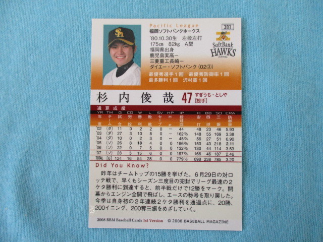 ★BBM 2008★1st Version〔301 杉内俊哉 福岡ソフトバンクホークス〕トレカ♪