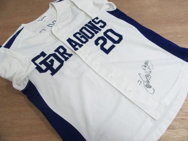| ★中日ドラゴンズのユニフォームです。 ★腹部にサイン?が入っております。当方知識が無く詳しい事はわかりかねますので画像で判断できる方のみ入札お待ちしております。 ★素材:画像をご参照下さい。 ★表記サイズ:SS-S ★計測サイズ(平置き):着丈(背中上部~裾)70cm 身幅(脇の下)56cm 素人採寸の為多少の誤差はご了承ください。 ★状態:10/6くらいです。多少の使用感はありますが着用に問題のある大きなダメージも特にありません。画像にて判断願います。 |