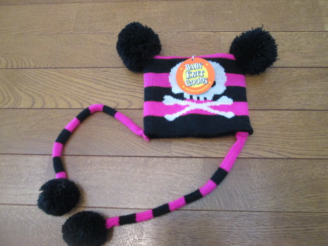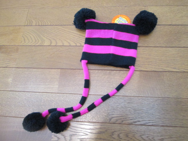 34㎝ ピンクと黒のボーダー ニット帽 タグ付き
