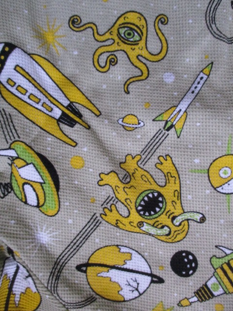 宇宙人(エイリアン)やロケット、UFOなどの総柄が可愛いデザインですね!