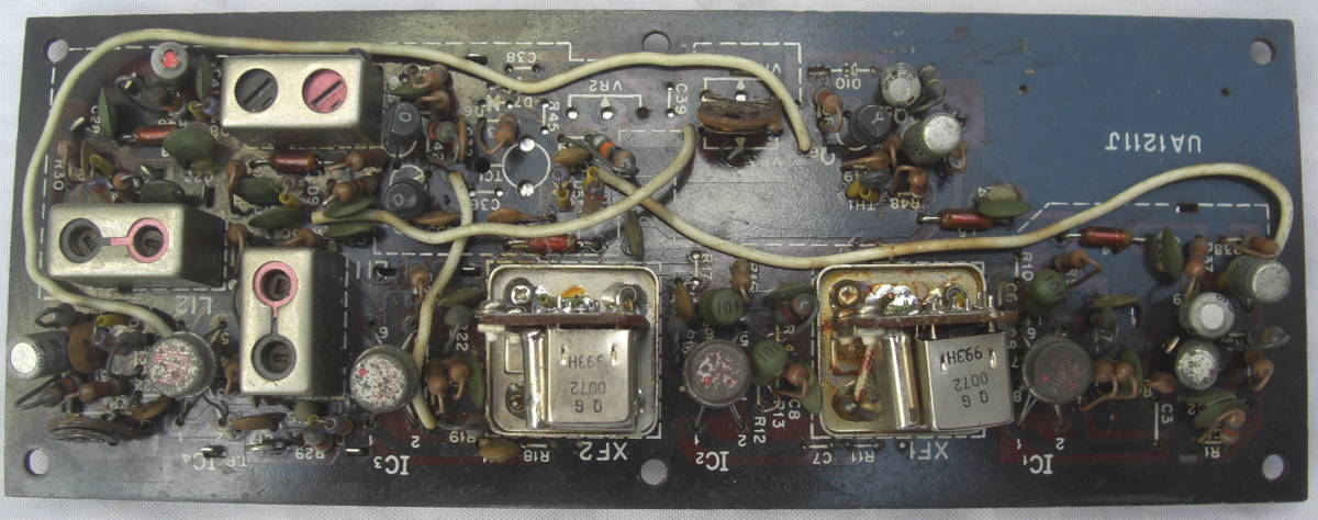 TRIO/希少ゲルマTr/クリスタルフィルター部品取未使用品0503 ★ユニットNo,UA1211J ・TOSHIBAなべ型 IC TA7045N x4本 ・TOYO::10.7MHzクリスタルフィルター 2個 ・ゲルマニウムTr:日立2SC2812個/2SA234,1個使用 ・東芝 2SC381 2個/2SA562 1個 ★ユニットサイズ::最大外形W186xD70xH40mm程 ★配線図/規格表等は御座いません。ユニットのみの出品です。 未使用品ですが、大変古く希少ユニットです、多少の部品の破損が 御座いましても、ご了承の程宜しくお願い致します。 状態等はお写真でご覧下さい。 ★送料郵便定型外\450-加算御願い致します。 ・送料は梱包状態で変わる場合が御座いますが、過、不足に関わらず ・過剰分御座いましてもご返金致しませんし、万が一不足でもご請求は致しません。 ・あらかじめ御納得、ご了承の上、宜しくお願い致します。 その他色々と出品致しております、宜しく御願い致します。 | ||