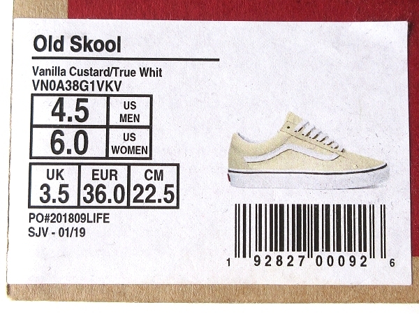 新品箱付 UA購入 完売 2019SS VANS バンズ OLD SKOOL オールドスクール キャンバス/スエード スニーカー 22.5cm バニラカスタード/ホワイト