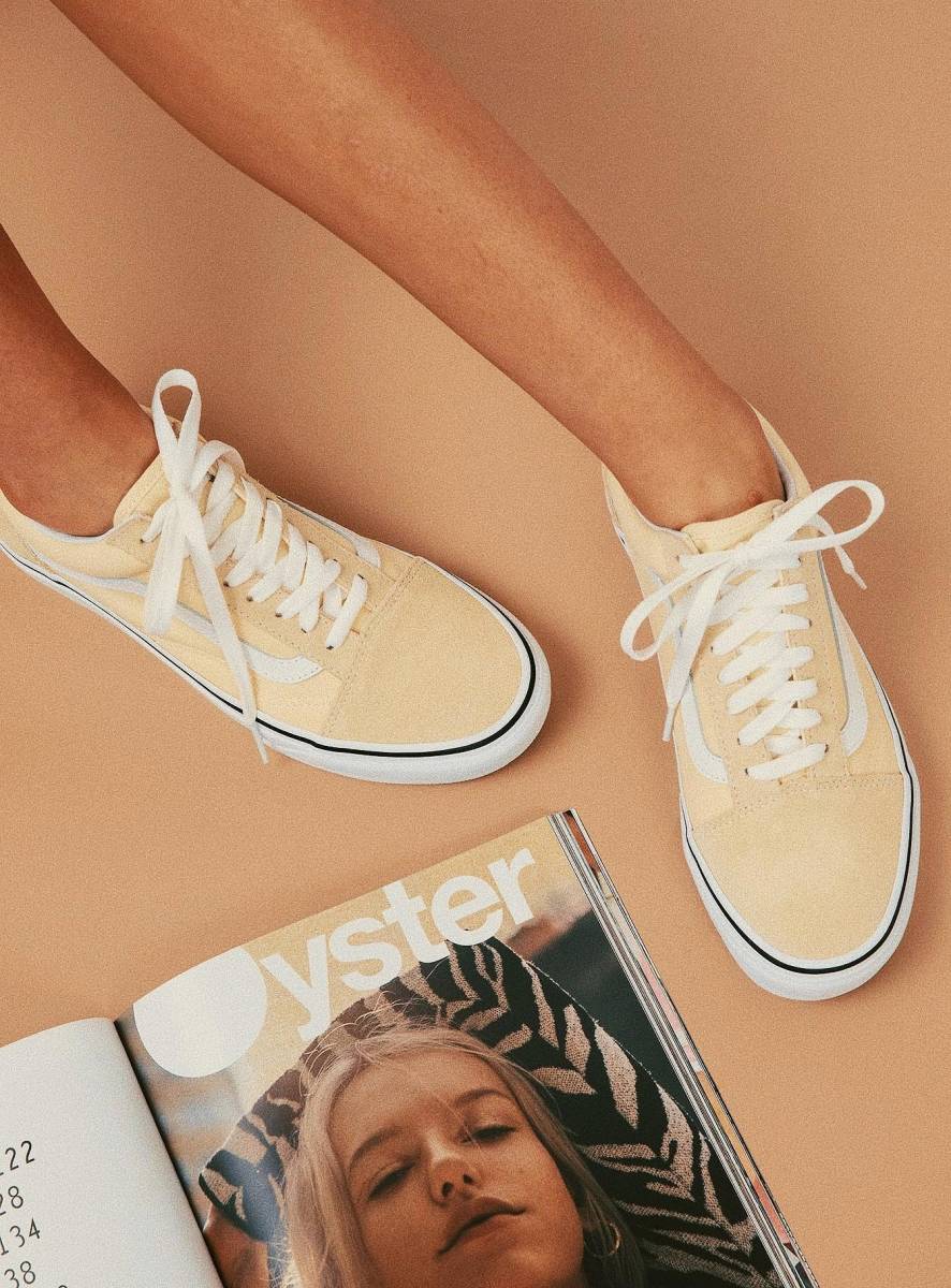 バンズの永遠のクラシックであるオールドスクールは、Vansのシグネチャーであるサイドストライプを初めて採用したモデルです。 1977年に「スタイル36」としてデビューしたこのシューズは、レザーパネルと今ではアイコニックな「ジャズストライプ」をあしらったロートップスタイルで、ポール・ヴァン・ドーレンによるランダムなスケッチからデザインされています。カラーは2019SSシーズンに登場したバニラカスタード/トゥルーホワイトのコンビ。飽きの来ないデザインで、様々なコーディネートにお使い頂ける一足です。