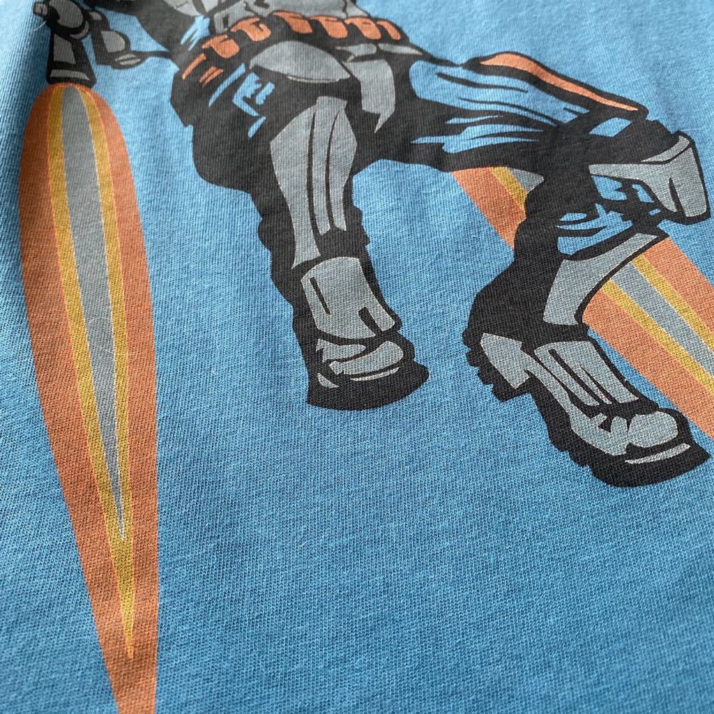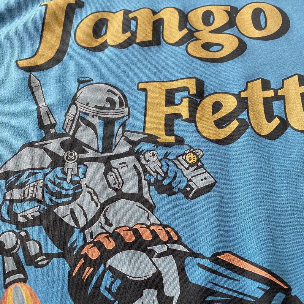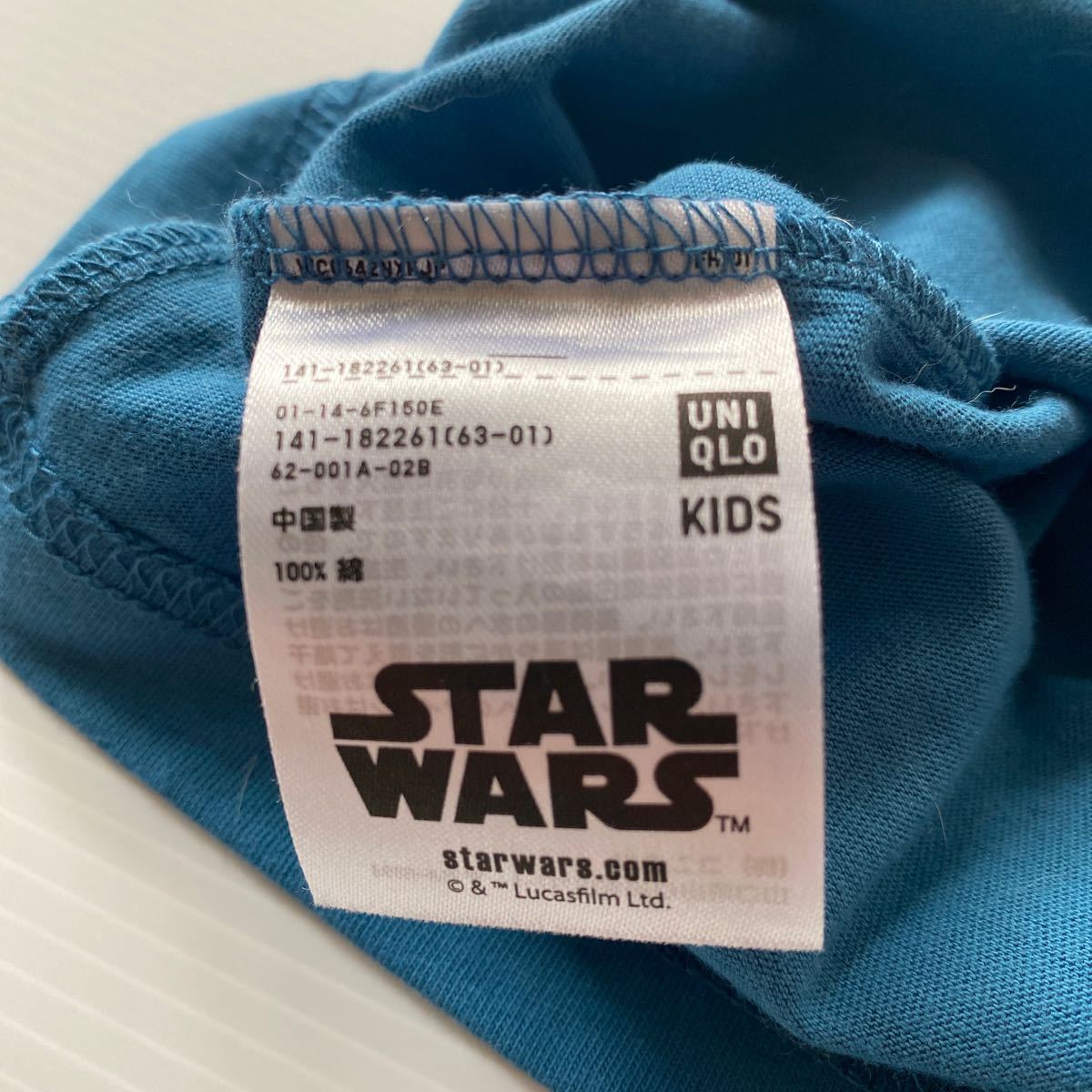 UNIQLOのキッズ160cmの長袖Tシャツです。ブルーグレーのベースにジャンゴフェットが躍動感あるプリントでアメリカン!大人用には無いデザインで、アメリカンキッズが着ていそうで可愛いです。袖丈はロンT仕様ですがキッズ用ですので9分丈になる方もいらっしゃるかも知れません。下記の素人平置き採寸にてサイズチェックをなさって下さいませ。一目惚れ購入しましたがコロナ禍太りしてしまいましたので出品致します。着用予定でしたので1回水通し洗濯しております。ご理解頂ける方のみご覧下さい。