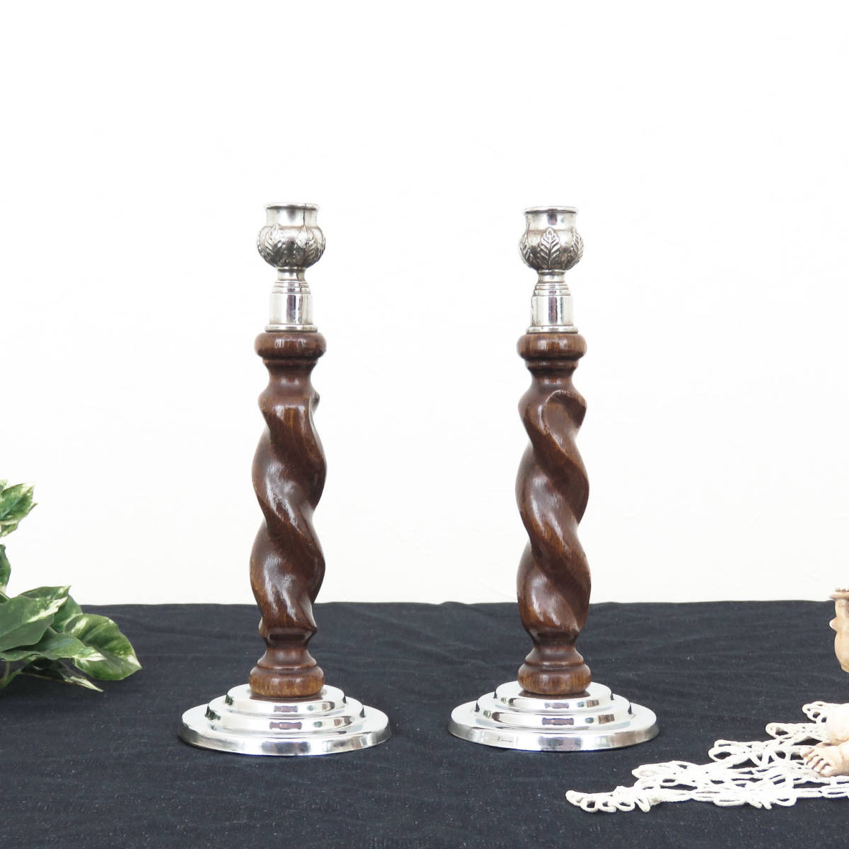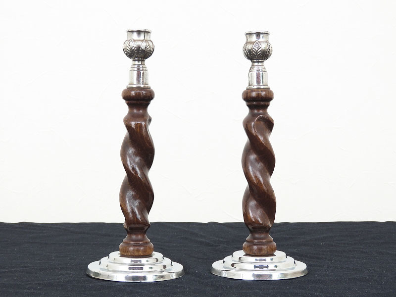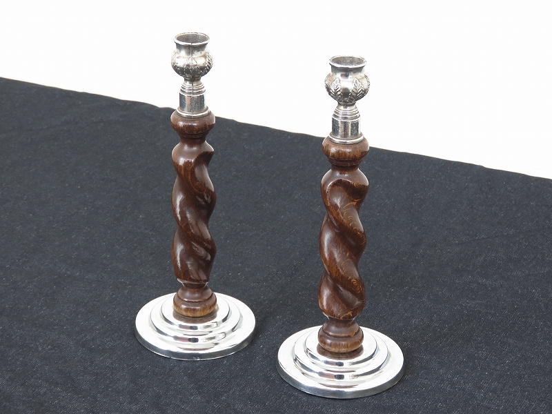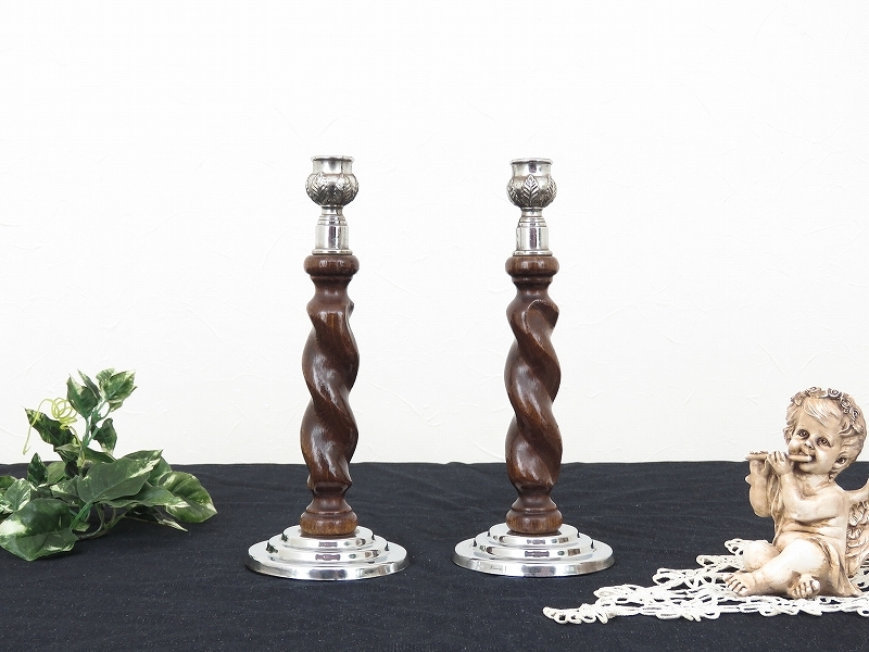 ツイストのキャンドルスタンド(ペア) /木製/燭台/ろうそく立て/店舗什器/ディスプレイ/インテリア雑貨/イギリスのアンティーク雑貨/AL-2202
