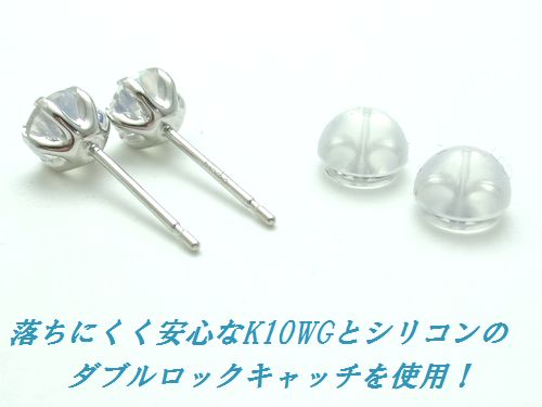 キャッチは、ホワイトゴールドとシリコンのダブルキャッチになっているので、落ちにくく安心してお使い頂けます。