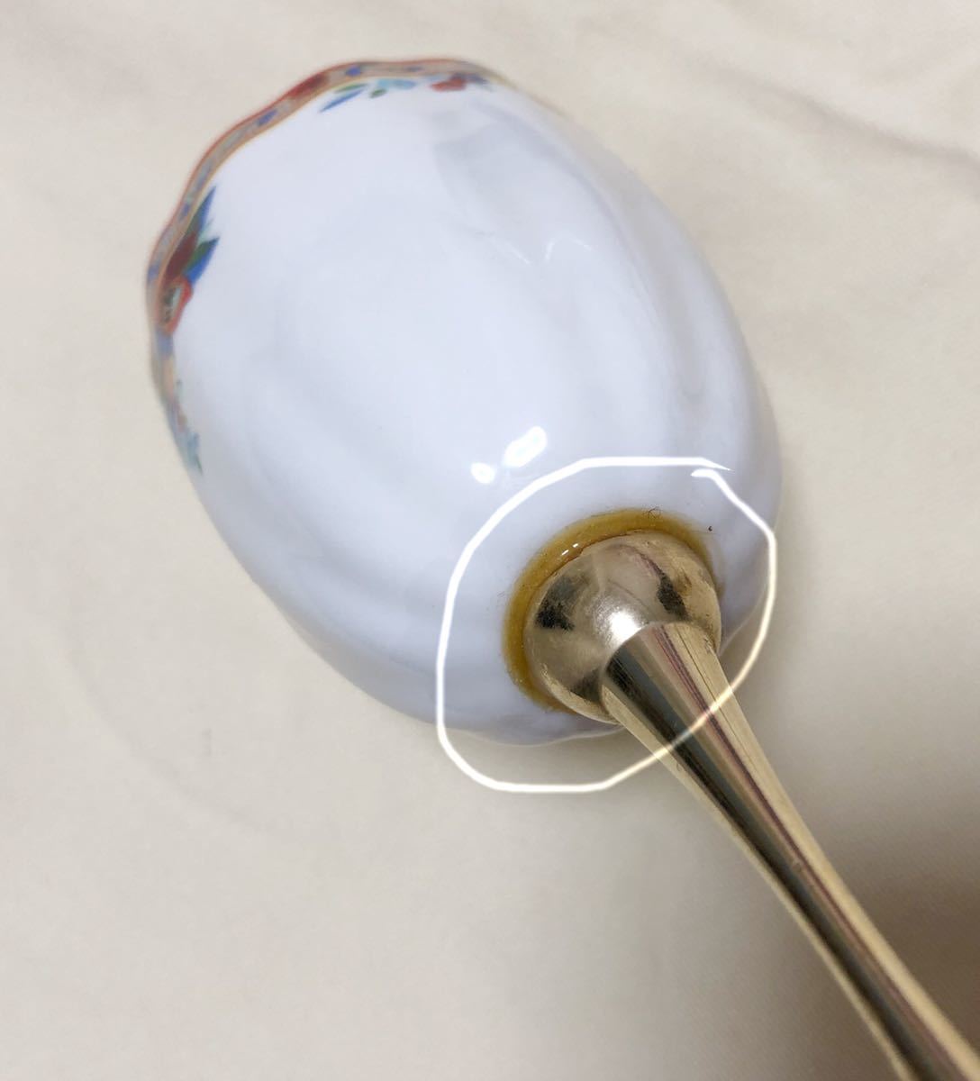 カップ部分が陶磁器、脚部分が金属製です。