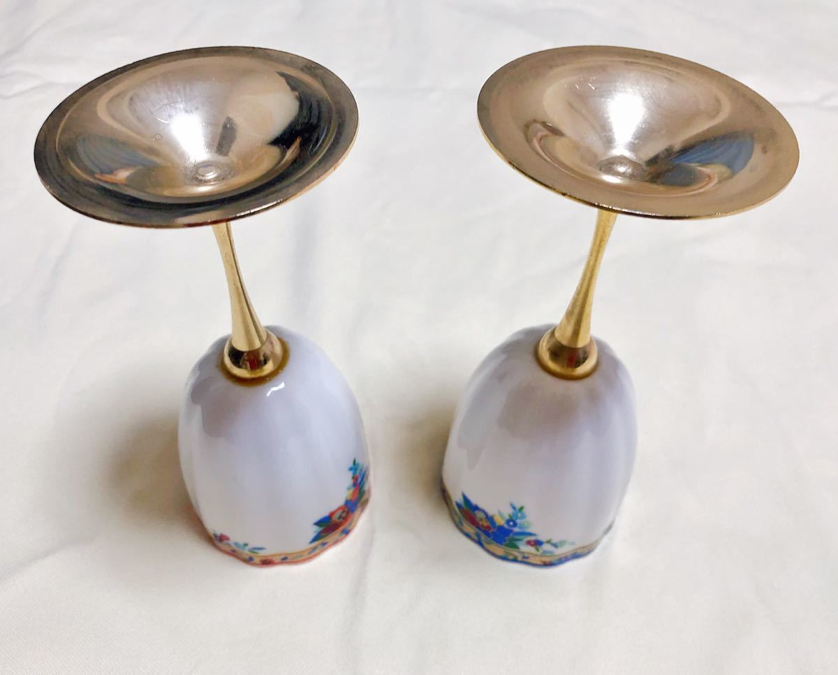 一つのカップの接合部分は修復処置しまして、接着剤の跡が残っています。金属足には少し変色がありますが、まだまだ綺麗な状態です。詳細は写真にてご確認の上、購入をお願いいたします。