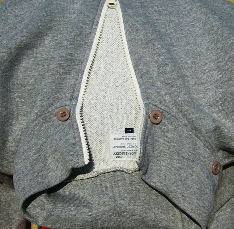 cp-c works sports チャオパニックの古着 襟部分にボタンがあり、これは取り外し可能のパーカーがあったのかもしれません、ご覧の通りパーカーはありません