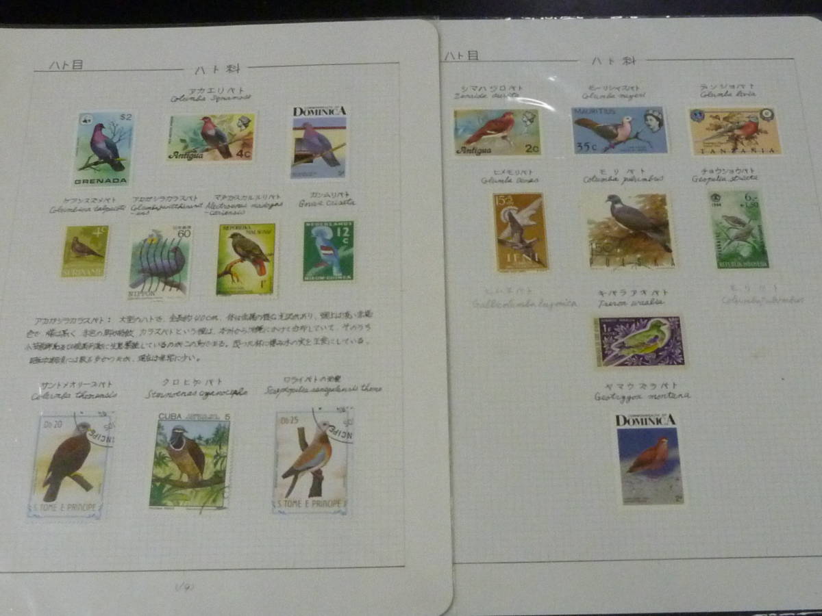 21MI S №10 鳥切手 世界各国 ハト科・アビ科・他 9リーフ 計62種 使用済主体