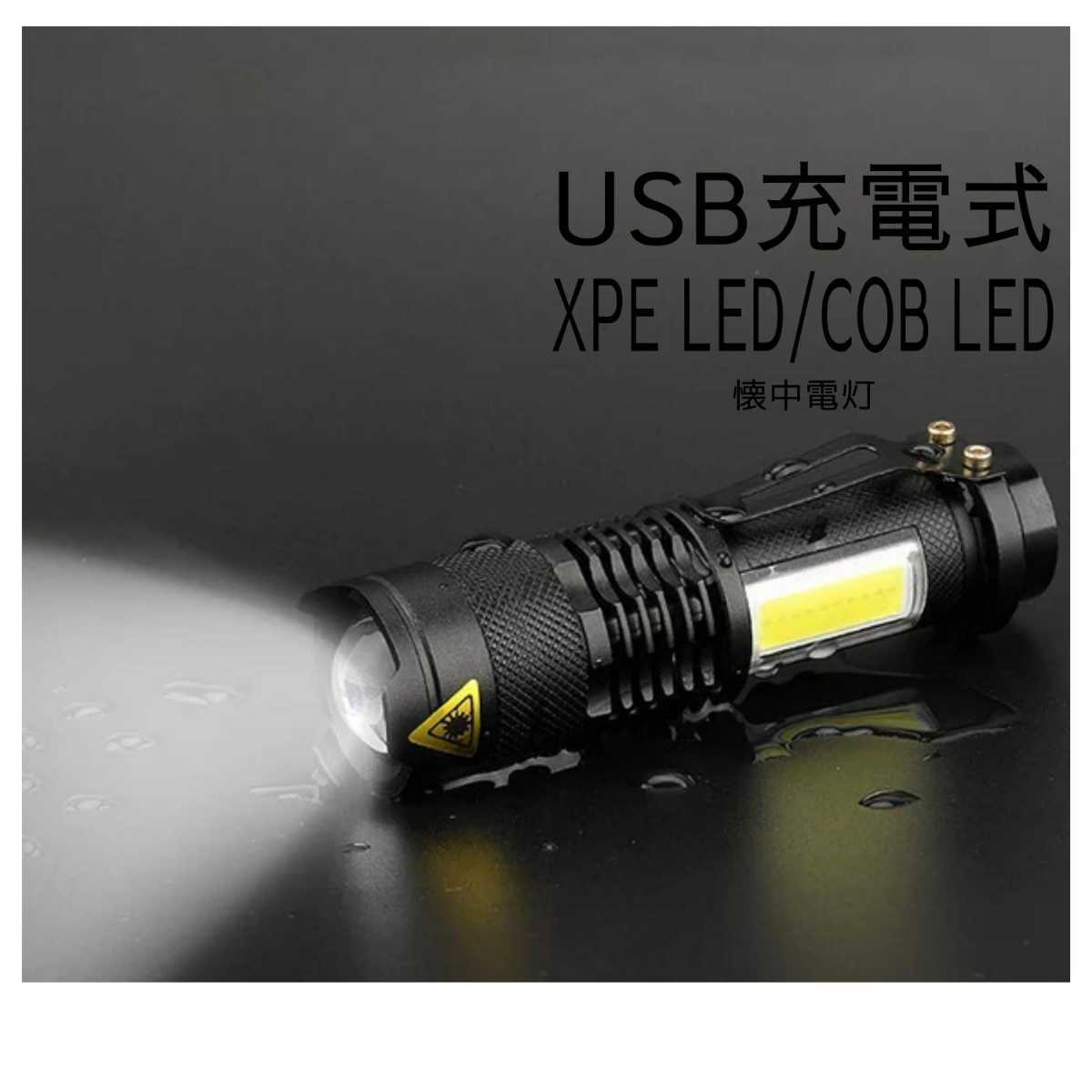 小型USB充電懐中電灯、内蔵リチウムイオン充電電池型強光懐中電灯、直接USB充電可。