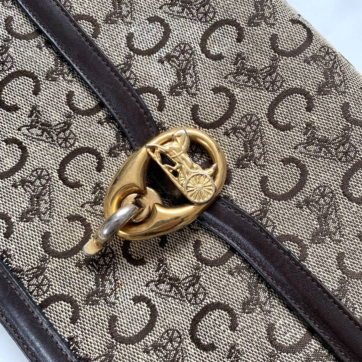 《デザイン》トートバッグ 肩掛け カバン ヴィンテージ 金具 馬車ロゴ 金具