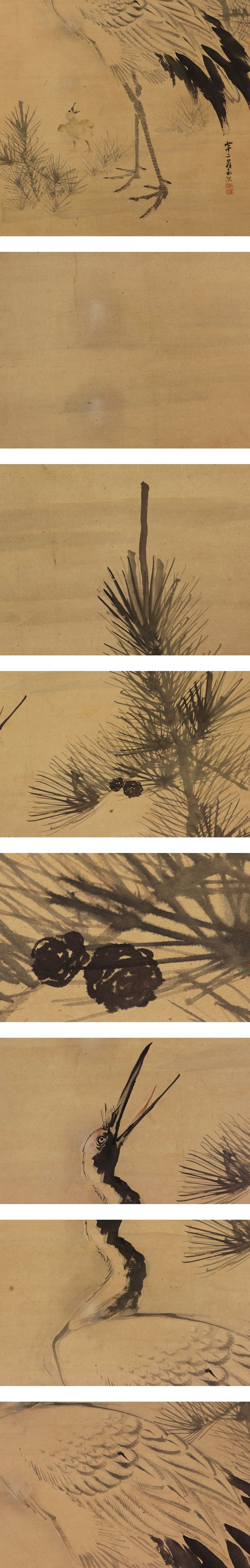 春木南溟 はるき-なんめい(1795-1878) 江戸後期-明治時代の画家。 寛政7年生まれ。春木南湖の子。父の画法を継いで山水・花鳥画を得意とした。 明治10年第1回内国勧業博覧会に「日光霧降滝図」を出品。明治11年12月12日死去。84歳。 江戸出身。名は秀煕,竜。字は敬一,子緝。通称は卯之助。別号に耕雲漁者。 本紙は、染み、汚れ、折れ、皺があります。 表装は、染み、汚れ、剥れ、ヤケがあります。 【サイズ】 作品 横約52cm×縦約130cm 表装 横約65.5cm×縦約211cm |