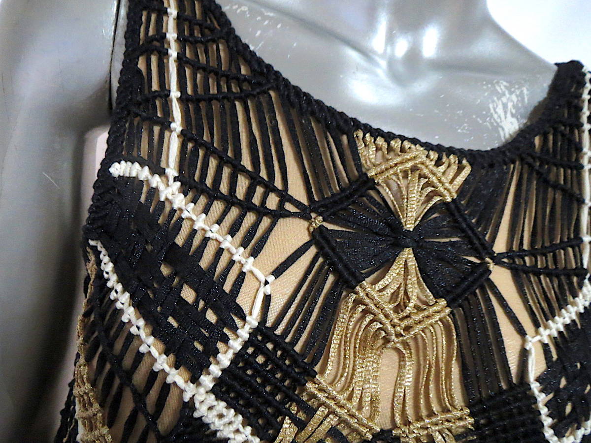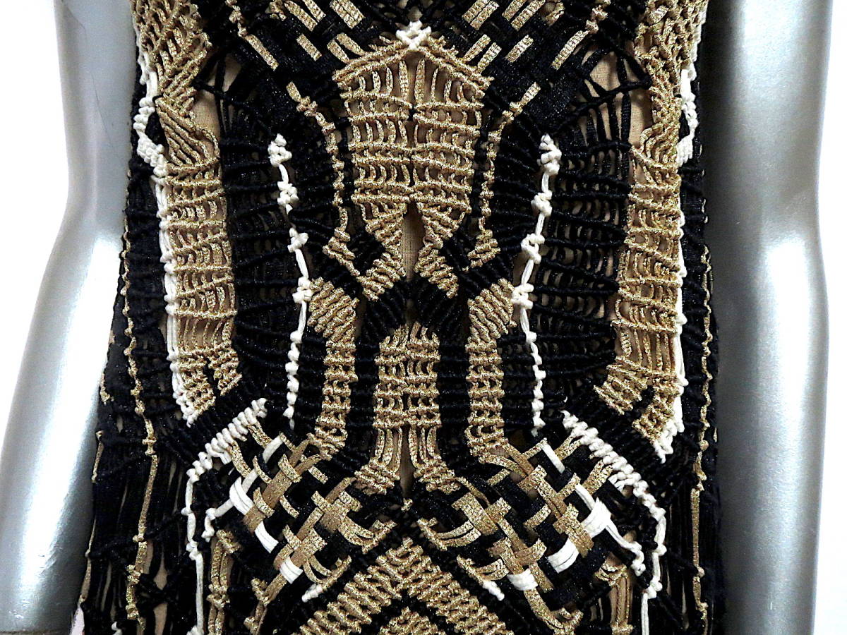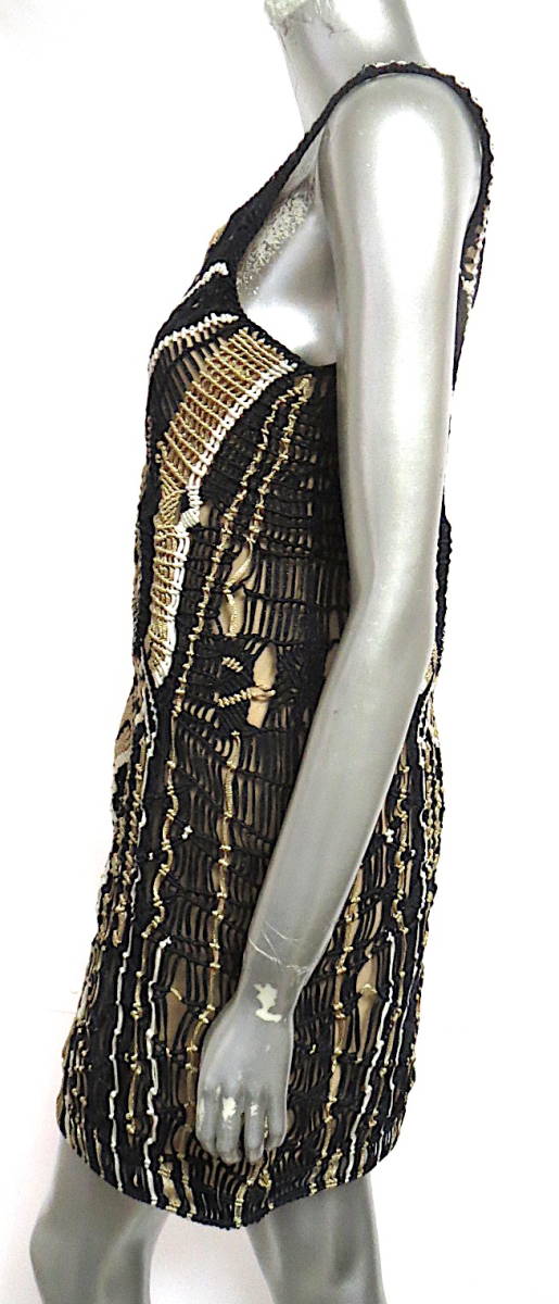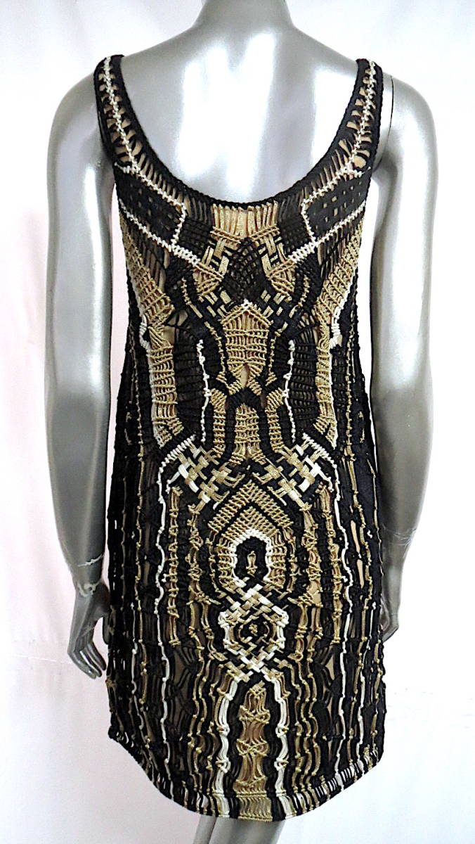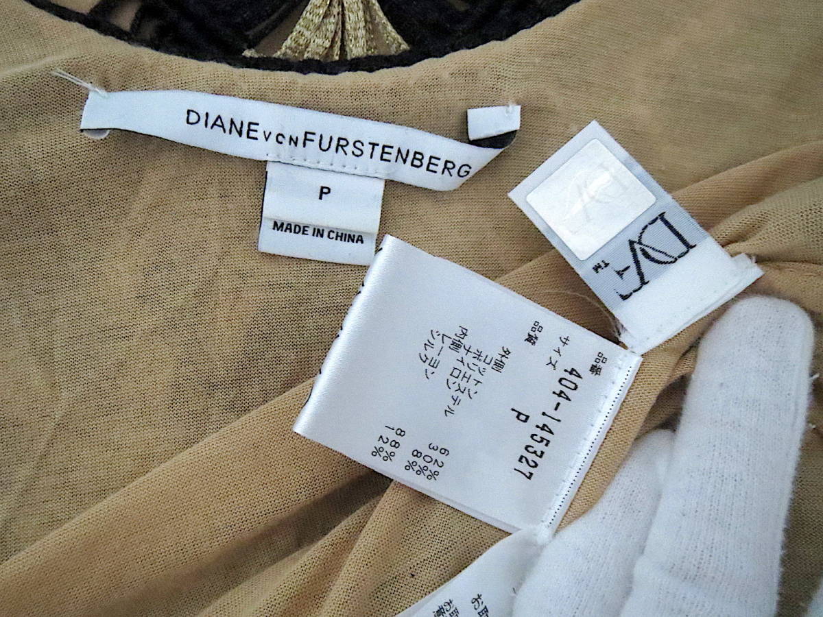 二点落札で送料無料! D27 DIANE VON FURSTENBERG ダイアンフォンファステンバーグ ワンピース P ノースリーブ S ブラック 黒 ゴールド