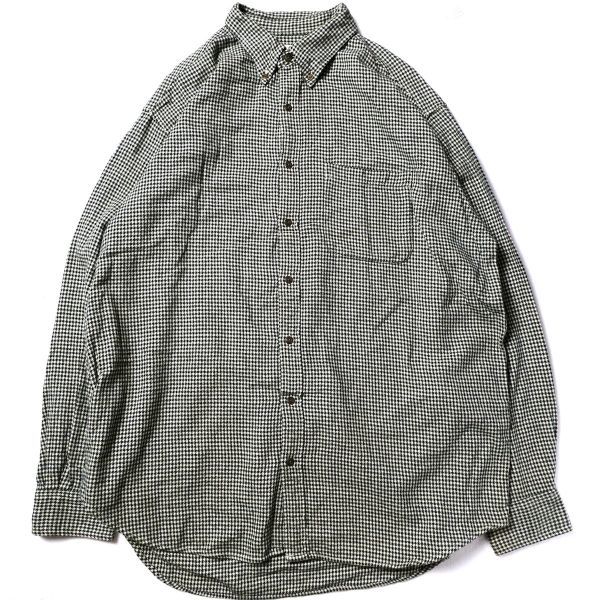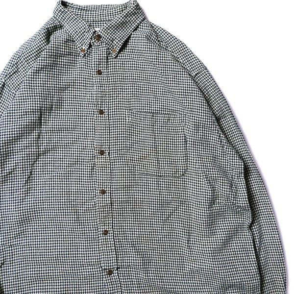 90's Jクルー J.CREW 千鳥格子 フランネルシャツ緑×白系 (L TALL) チェック コットン ボタンダウン ネルシャツ 90年代 旧タグ オールド
