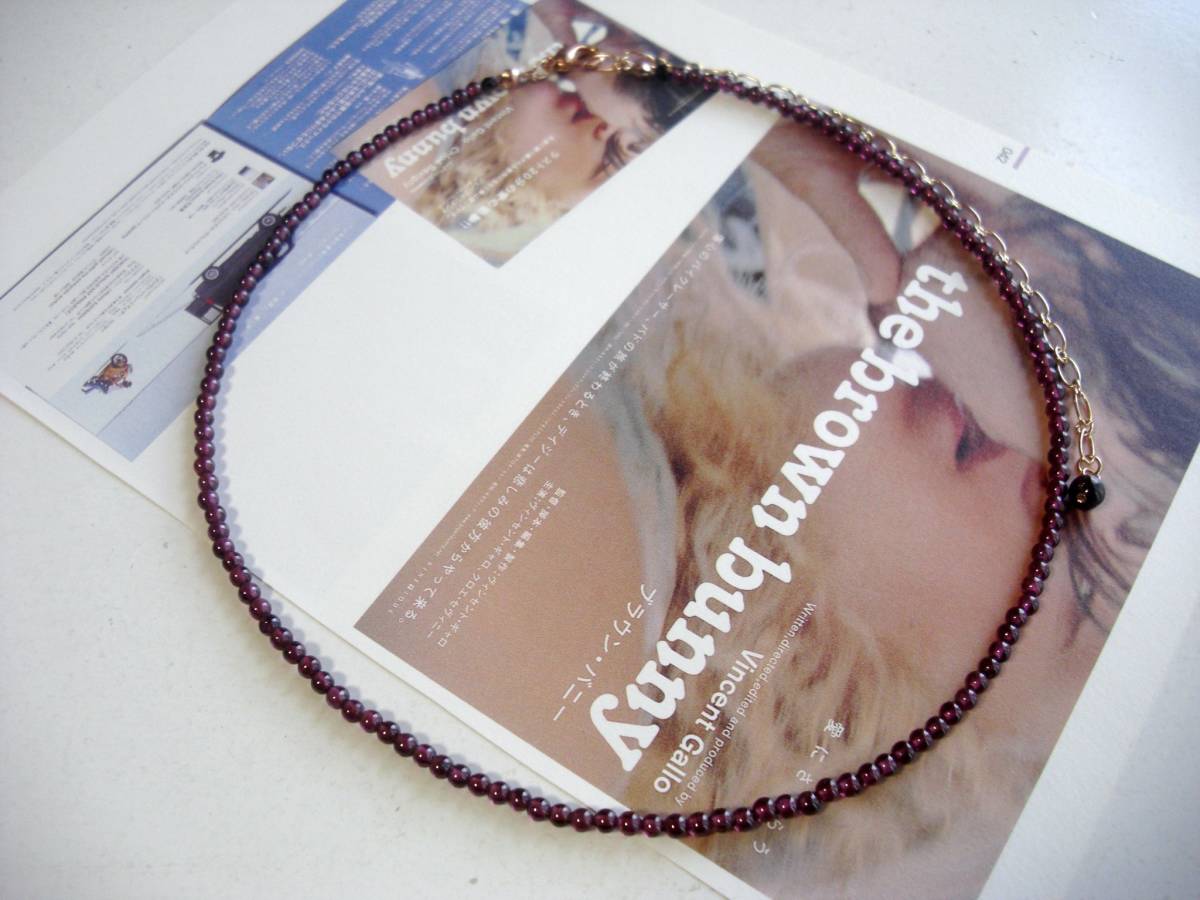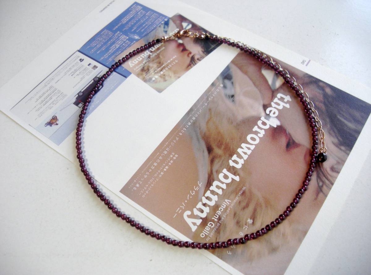 お揃いコーデ・・シリーズです♪ガーネット見本帖・・深い赤のガーネットのネックレスです♪小粒の丸玉のガーネットにピンクゴールドのチェーンを合わせて可憐な表情です♪シンプルなデザインは3ミリの丸玉のガーネットです♪長さは42センチ+アジャス ター13センチで全長55センチです♪ブレスレット、イヤリングも出品しています♪♪シンプルで飽きのこないいつまでも着けられるデザインを考えて作りました!ハン ドメイドをご理解頂いてノークレーム、ノーリター ンでお願いします
