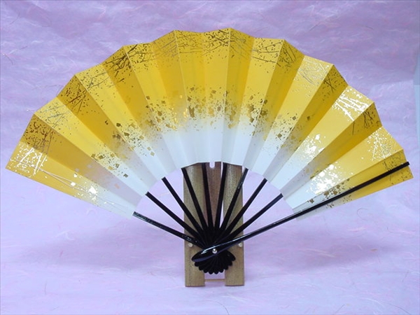24,舞扇子 日本舞踊・踊り用 29cm 天地小石 てんちこいし 黒塗 山吹 京扇子 箱なし