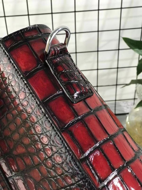 本物のワニ革を使用し、使い込むことにより味が増し、深みのある色に変化していくので光沢の変化も楽しめます。