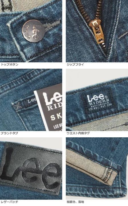 Lee伝統のシルエットにユーロテイストのアレンジデザインを加えたシャープでモダンなシリーズ『EURO RIDERS(ユーロライダース)』。アンティーク調のトップボタン・リベットを使用し、ブラックの革パッチ、縦長のバックポケット、波型ステッチがポイントになっています。シルエットはやや浅めの股上に、太ももから裾までぴったりフィットする美脚ラインのスキニータイプ。伸縮性のあるストレッチ素材を使用しているので、細めのジーンズが苦手という方にもおススメ。日本製による確かなクオリティと、スタイリッシュなシルエットが魅力的な1本です。