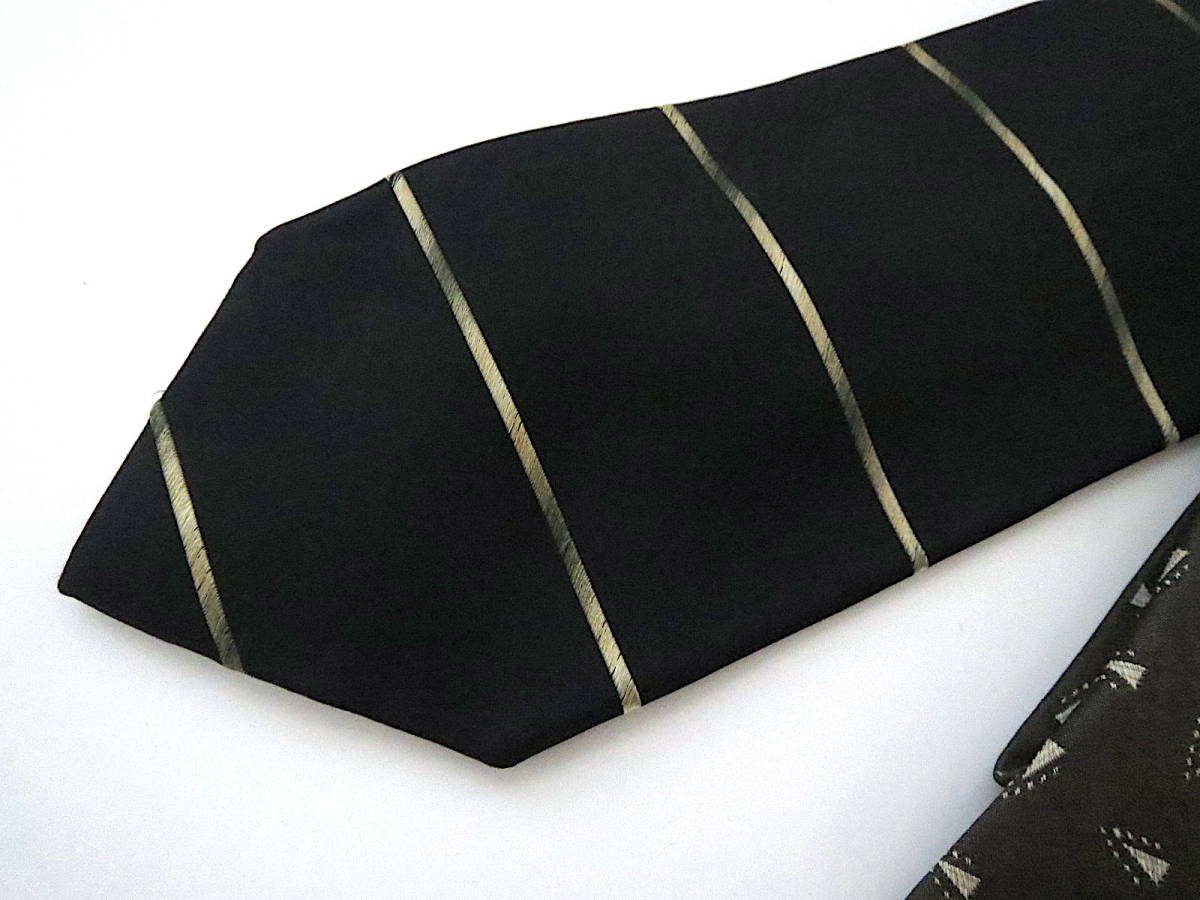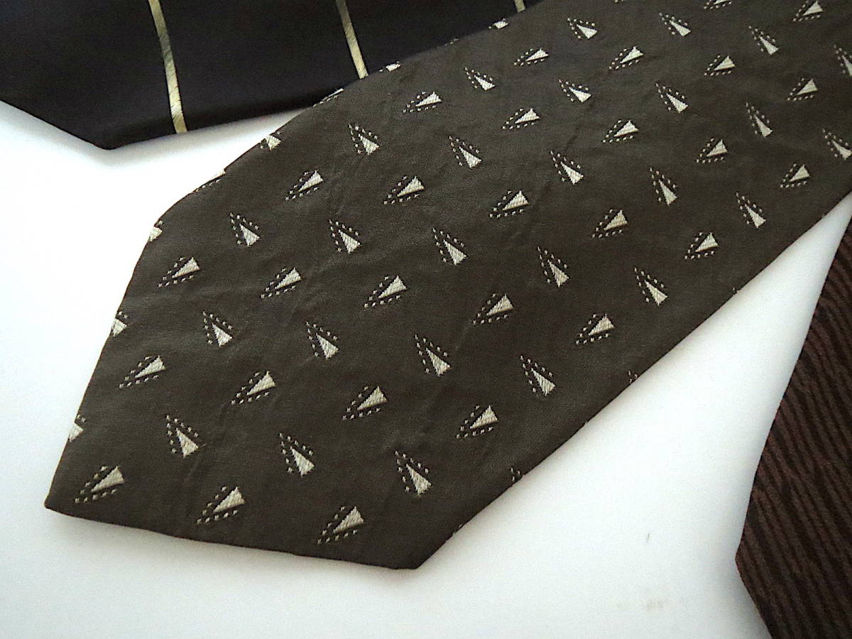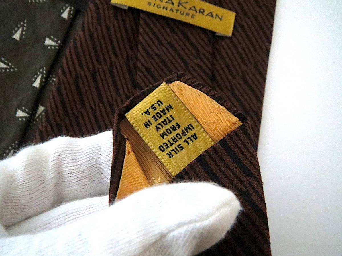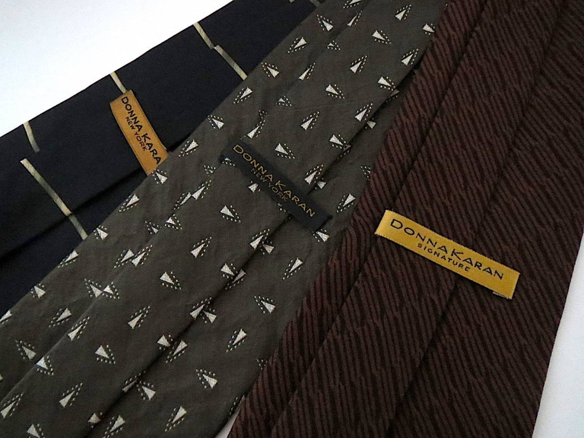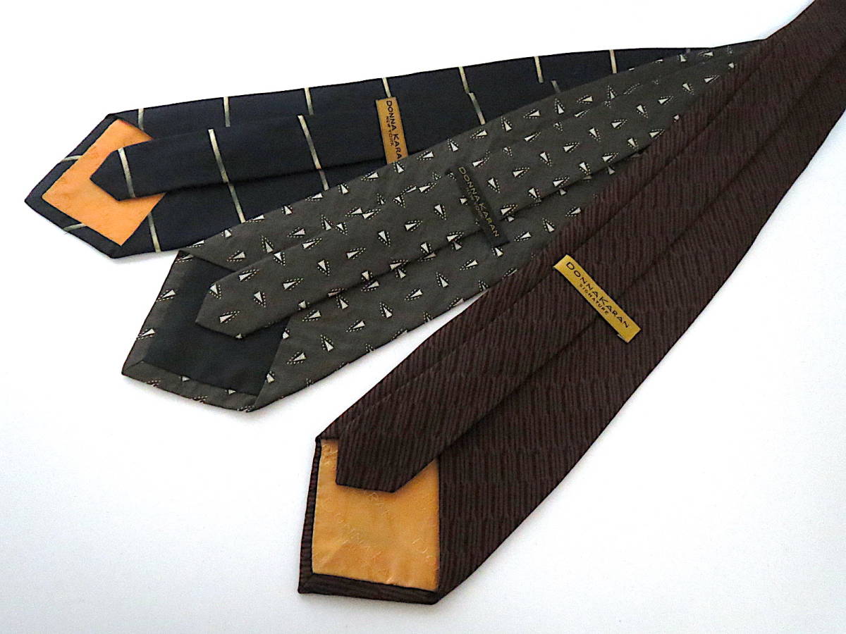 二点落札で送料無料! 2A26 DKNY ダナキャラン ニューヨーク ネクタイ 3本 シルク100% 絹 ブラウン 茶 カーキ 黒 ブラック 総柄