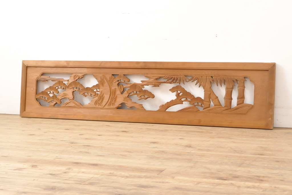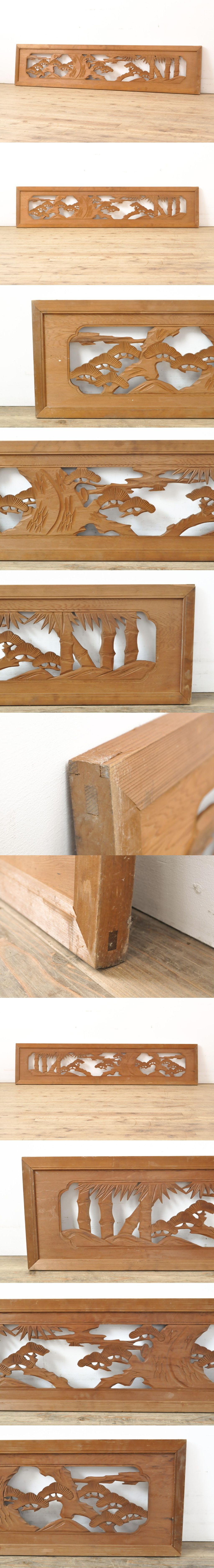 アンティーク建具 松・竹 力強い彫りが目を引く彫刻欄間1枚(明かり取り、明か取り)(R-056481)