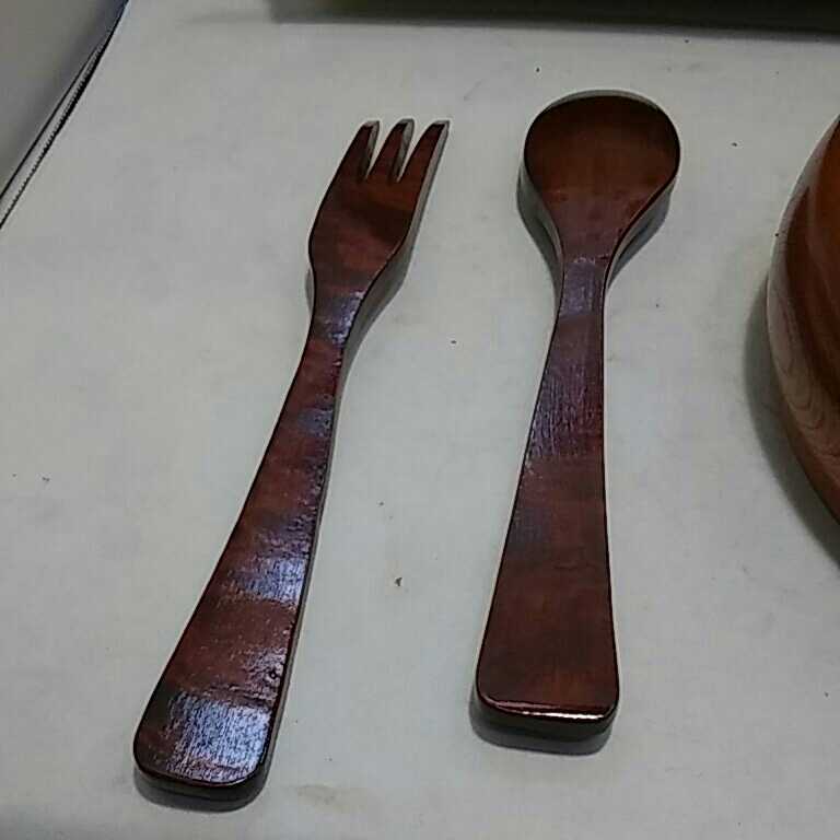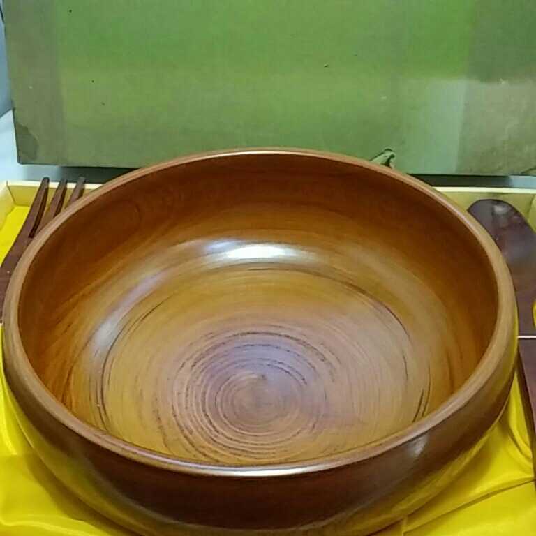 木製のサラダボウルと取分け用の木製の大きなスプーンとフォークのセットになります。本品長期間保管していた品になるため保管箱には経年劣化が感じられますけども現状態のお取引になりますので、参考画像にて状態等を、よくご確認の上のご入札を、お願い致します。