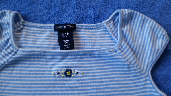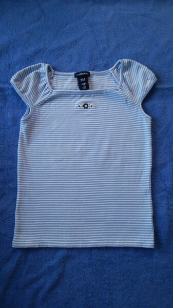 注意事項 :ポリウレタンが入っているので伸縮性有ります。水色ボーダにお花刺繍いりで可愛いです。★