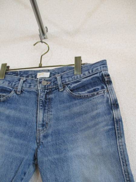| 商品状態 | ( C )当方で裾を切った際、前後の長さが少し違っています。 お尻、膝に着用による擦れあり。 ブランドタグ上側、本体のデニム生地に茶色っぽい色移りあり。 右裾に薄茶の汚れあり。 ランクの見方 S・・・新品、新品同様の美品 A・・・使用感のない美品 B・・・使用感がありますが美品 C・・・そこそこ使用感あります D・・・かなり使用感があります |