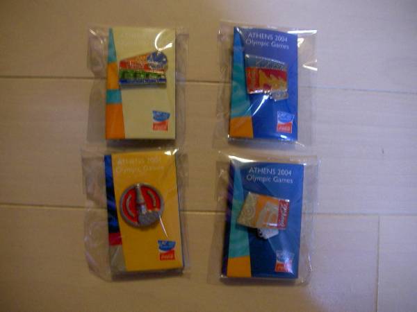 コカ・コーラの2004年、アテネオリンピックのピンバッジの4個セットです。