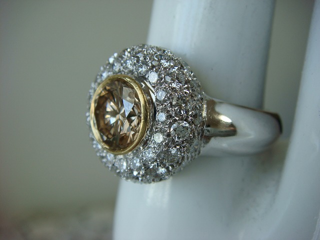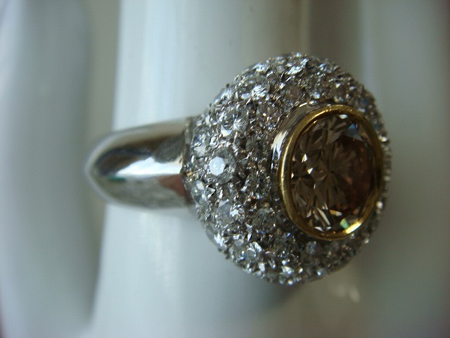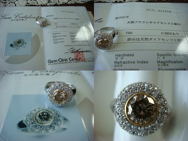 | ご覧頂きましてありがとうございます! 天然ブラウンダイヤリングです。サイズは約15,5です。ブラウンダイヤは約7mmありますのでおおむね1カラット以上あると思われます。メレダイヤも1カラット以上あると思われます。 海外作製の為、ダイヤの石目はありません。750の刻印入り。鑑別書付き。重さは約9,4gです。 追加画像がありますのでパソコンでご確認ください。 宝石との出会いは一期一会です。『いいな』と思ったら是非、身につけてあげて下さい。きっと宝石も喜ぶことでしょう! 宝石は決して貴女を裏切りません。身につけた貴女を守ってくれることでしょう。 いつも頑張っている自分へのご褒美にいかがでしょうか? 良いものをひとつお持ち下さい。一生物のジュエリーとなります。 画像での判断は難しいと思いますが、落札後の返品、クレーム等の無きよう、ご自分の自己責任においてご入札下さい。 モニター、パソコン、カメラによって色や感じ方が変わりますのでご注意下さい。 商品についてはコレクター、質屋さん、お客様の委託品が中心ですので、ご質問の答えが遅くなる事がありますがご了承下さい。 商品説明につきましてはすべてをお知らせできませんので、質問にてお願いいたします。 基本的にはUSED品ですので、その点を十分にご理解の上ご入札下さい。 途中で出品を取り下げる場合もありますがご了承下さい。 尚、トラブル回避の為、申し訳ございませんが、新規の方及び評価によってはこちらで入札を削除させていただく場合もございますが、ご理解下さい。 メールの確認は夜になりますのでご連絡が遅くなることもありますがご了承願います。 品物にも人と同じように『こころ』があると思います。喜んでいただけることが私にとっても品物にとっても一番良いことだと思います。 『落札したけど気に入らなかった』ということが無いように十分にお考えになってからご入札下さい。 発送は宅配便を予定しております。また発送には2,3日かかる場合もございますが、ご了承願います。 落札金額より僅かですが『子ども虐待防止 オレンジリボン運動』へ寄付をさせていただきますがご了承お願いいたします。 | |